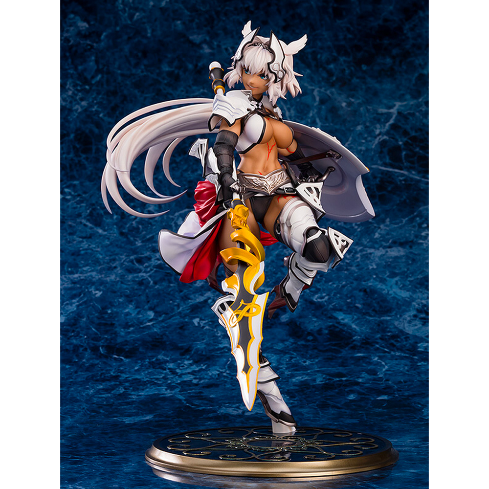 Caenis' beautiful muscular physique clad in white armor and her gold-decorated long spear and round shield have been faithfully captured in figure form. The figure also comes with a stand made in the image of an Olympian floor relief.