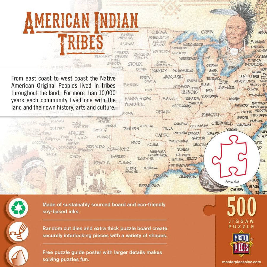This MasterPieces 15" x 21" 500Pc Tribal Spirit Puzzle pays homage to the rich culture and long history of America's Native American Indian Tribes. The Tribal Spirit Puzzle Line portrays Native American traditions and ceremonies with an almost reverent accuracy. With an incredibly detailed map showing all the settlements of our nation's Native American Indian Tribes, this puzzle will both educate and entertain! To reduce its impact on our environment, the chipboard used in this puzzle is made of 100% recycled material.