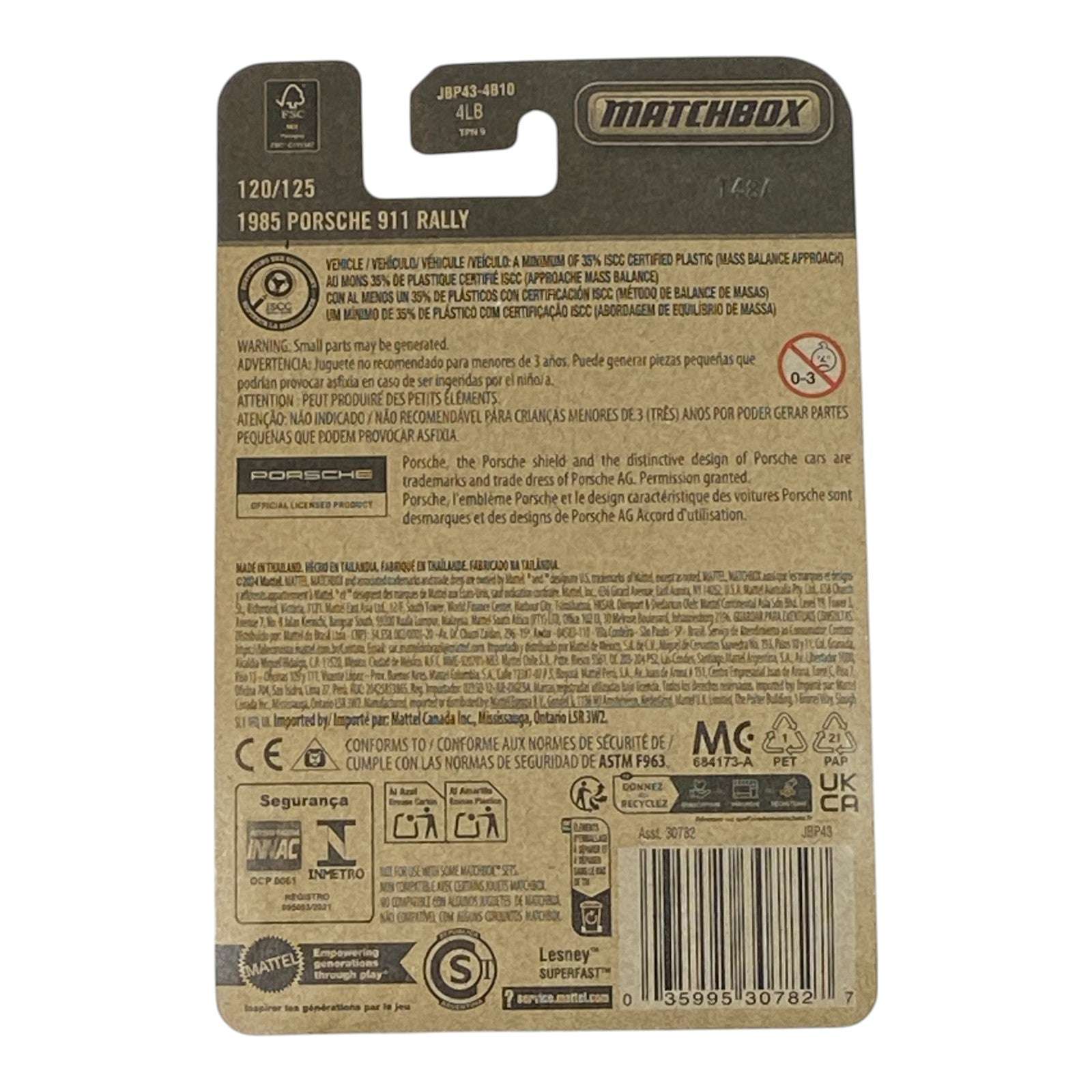 Introducing the Matchbox 1985 Porsche 911 Rally, a stunning diecast model that encapsulates the thrill of motorsport and the elegance of one of the most iconic cars in history. This model is part of the 2025 Matchbox Series 120/125 and is a must-have for both collectors and car enthusiasts. With its impeccable attention to detail and high-quality craftsmanship, this model pays homage to the legendary Porsche 911, known for its performance and design.