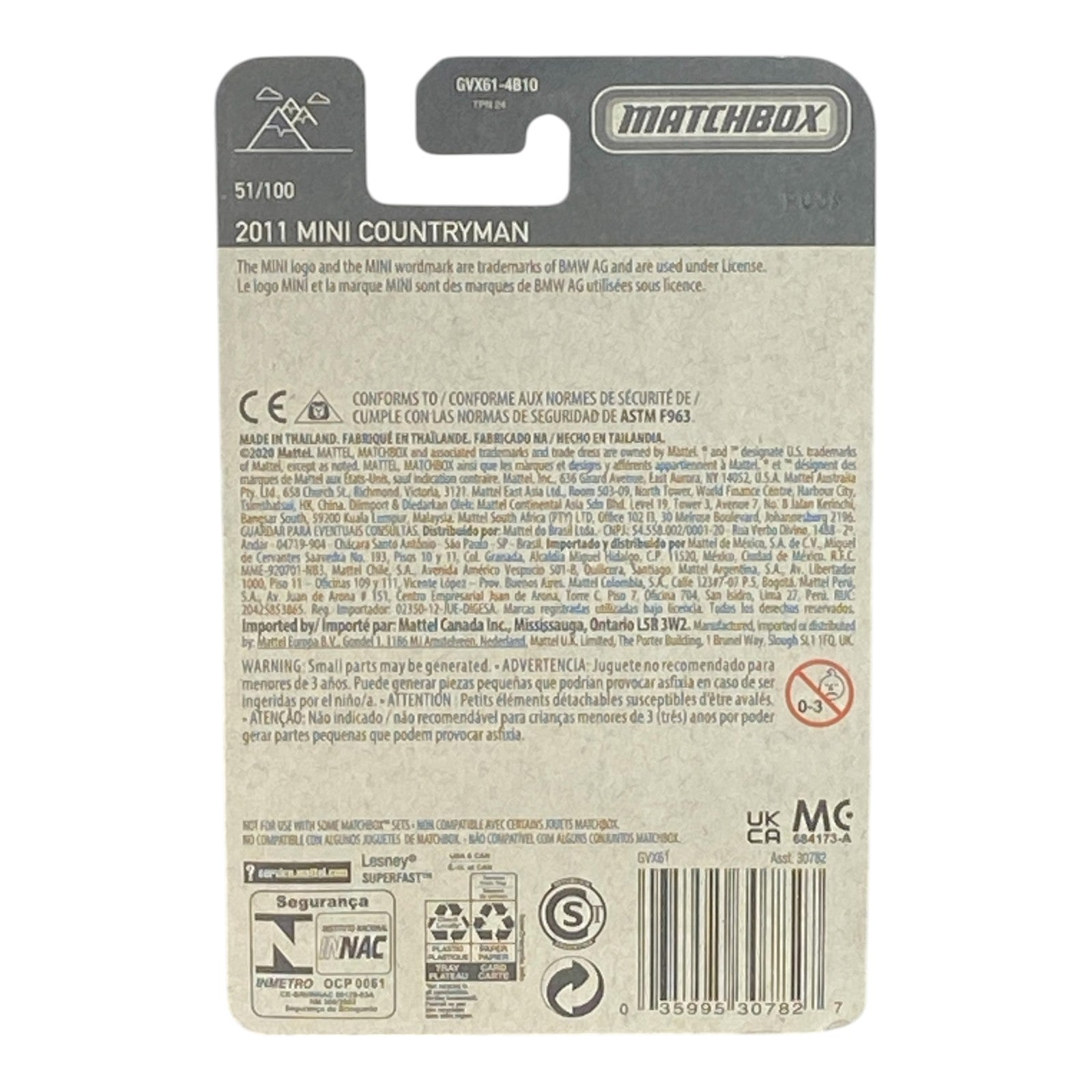 In conclusion, the Matchbox 2011 Mini Countryman is not only an inspiring model for children but also a collector's dream for adults. Keep an eye out for this edition, as its limited availability makes it a treasure for anyone who appreciates fine automotive models.