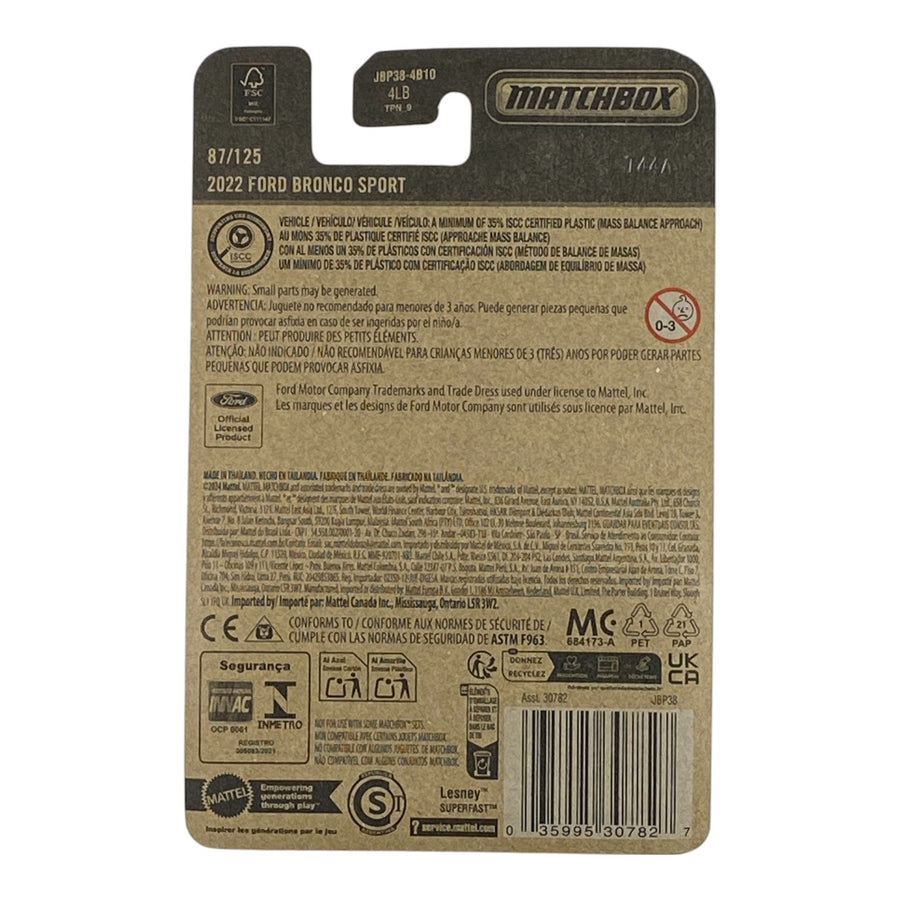 Incorporating advanced design technology, the Matchbox 2022 Ford Bronco Sport showcases:
