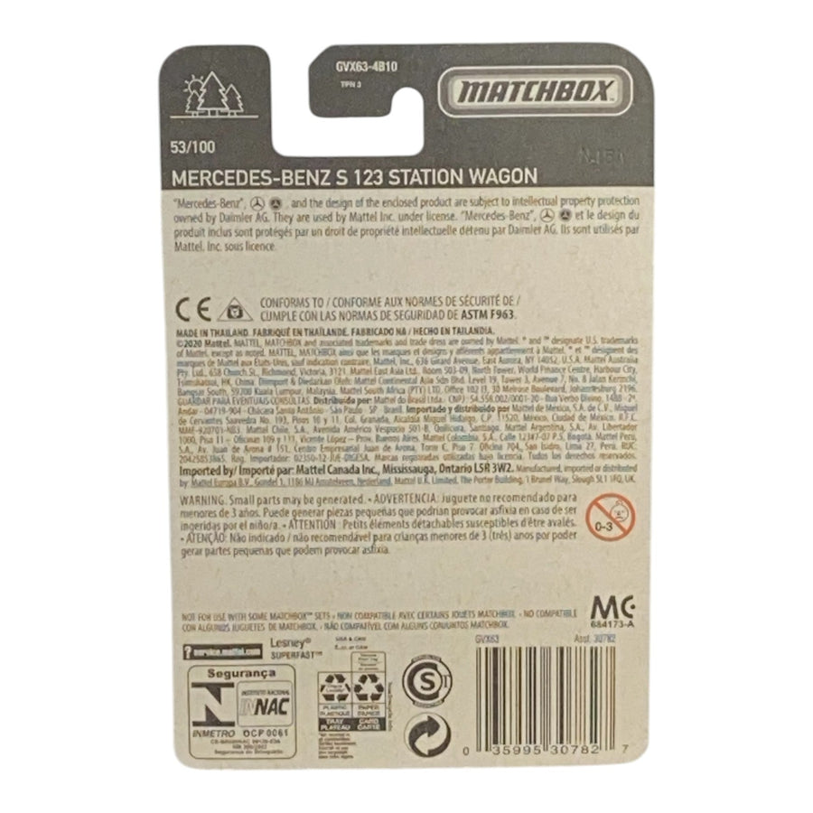 The Matchbox Mercedes-Benz S123 Station Wagon is a stunning model that captures the essence of classic automotive design. This detailed replica from the renowned Matchbox Series 53/100 will appeal not only to collectors but also to enthusiasts of German engineering. The S123 represents an era where family practicality met elegance, making it a must-have for any serious collection.