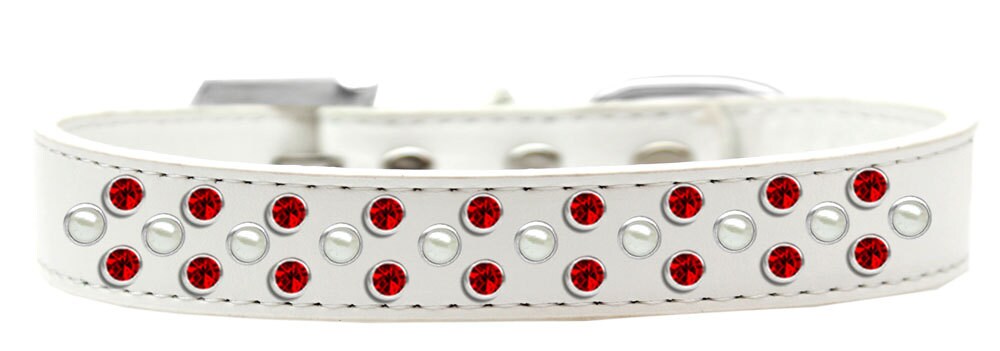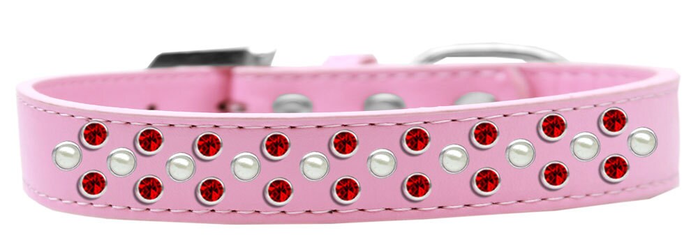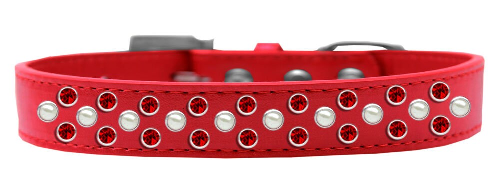 Dog, Puppy & Pet Fashion Collar, "Pearl and Red Crystal Rimsets Sprinkles"