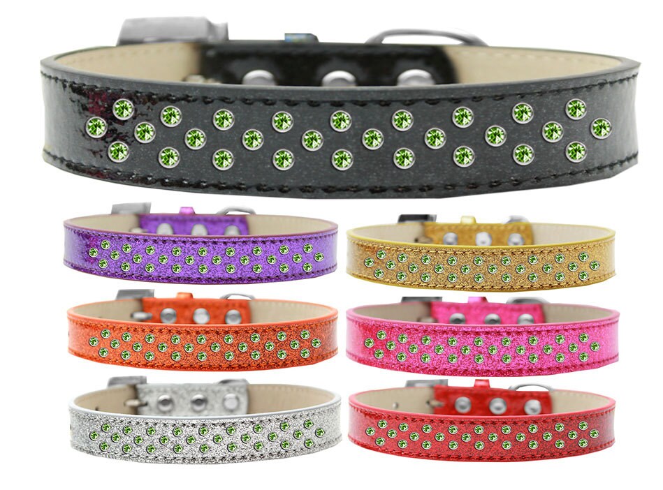 Add sophistication and elegance to your fur baby's wardrobe with a dazzling Crystal Ice Cream Dog Collar! These stellar 3 Row Crystal Collars, which we lovingly call our "Sprinkles" line are a soft, glittery collar are 3/4" wide featuring three sprinkled rows of pearl and crystal stones. This collar is available in multiple collar/stone colors, and an array of sizes.