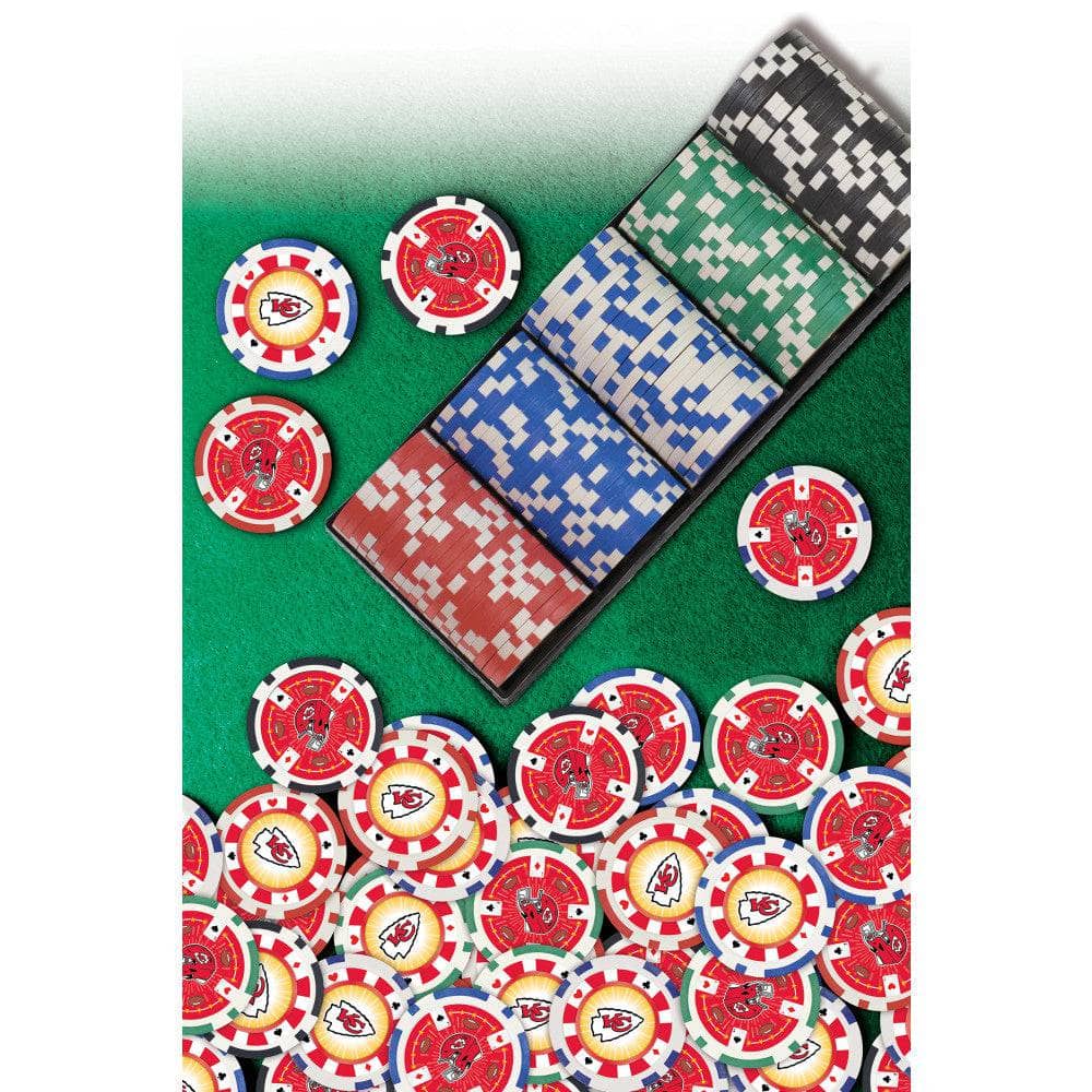 Show your team spirit at your next game night with the Kansas City Chiefs Poker Set by MasterPieces, featuring 100 high-quality, heavy-weight 11.5-gram poker chips in official team colors and designs. This officially licensed NFL product is perfect for fans looking to elevate their poker nights, tailgate parties, or sports-themed gatherings. The set includes a sturdy black tray that holds five rows of 20 chips each for easy storage and organization, making it ideal for both casual and competitive play. Designed for adults and suitable for all skill levels, these Chiefs poker chips are a must-have for any Kansas City Chiefs fan or collector. The compact size (8.5 x 3.27 x 2.25 inches) makes it easy to transport, while the durable construction ensures long-lasting use. Whether you’re searching for unique KC Chiefs party favors, sports poker chips, or a standout addition to your game room, this poker chip set delivers both style and function. Enjoy hours of entertainment with friends and family while celebrating your favorite NFL team. This set does not include playing cards or additional accessories.