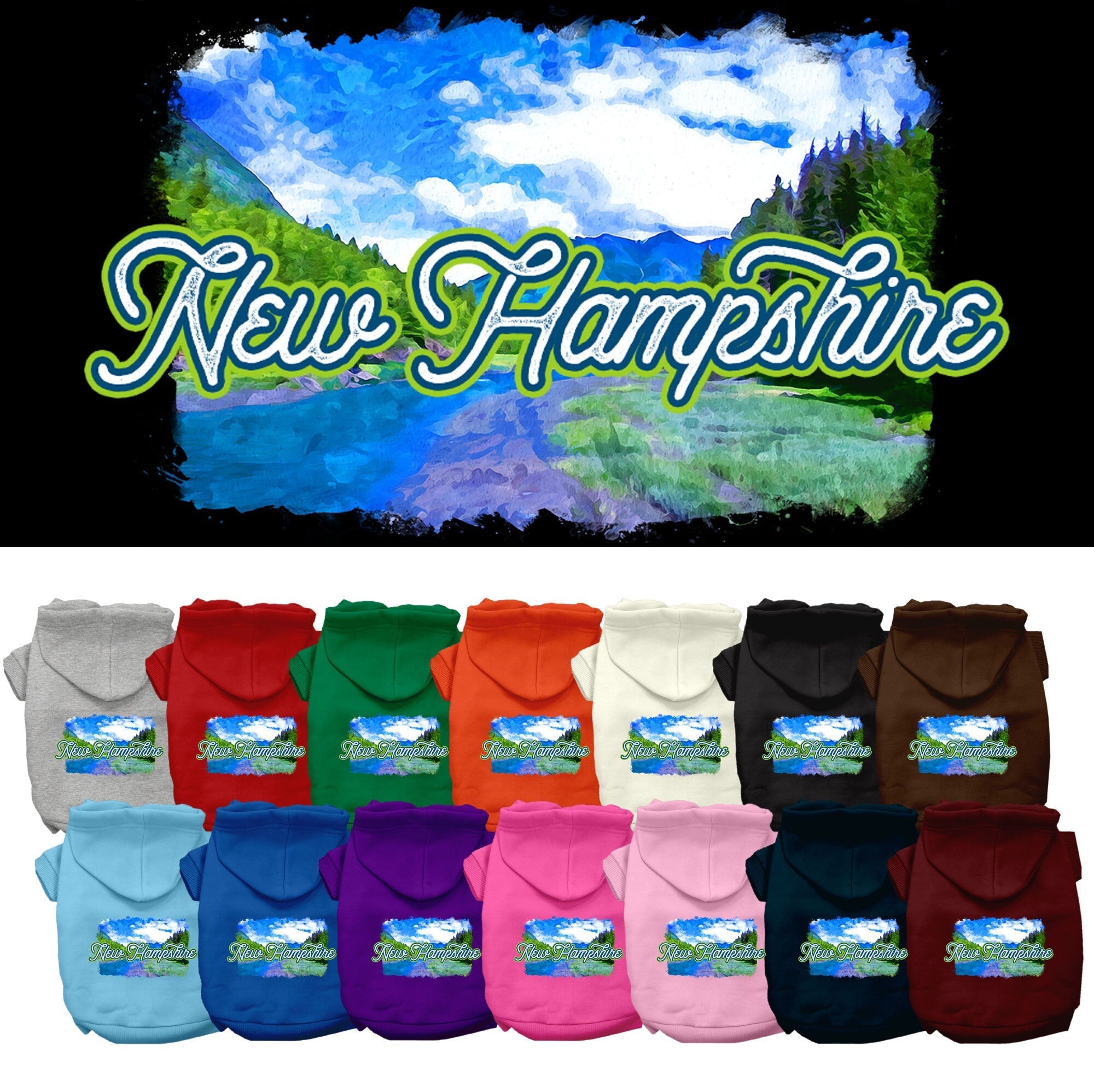 Pet Dog & Cat Screen Printed Hoodie for Small to Medium Pets (Sizes XS-XL), "New Hampshire Summer"