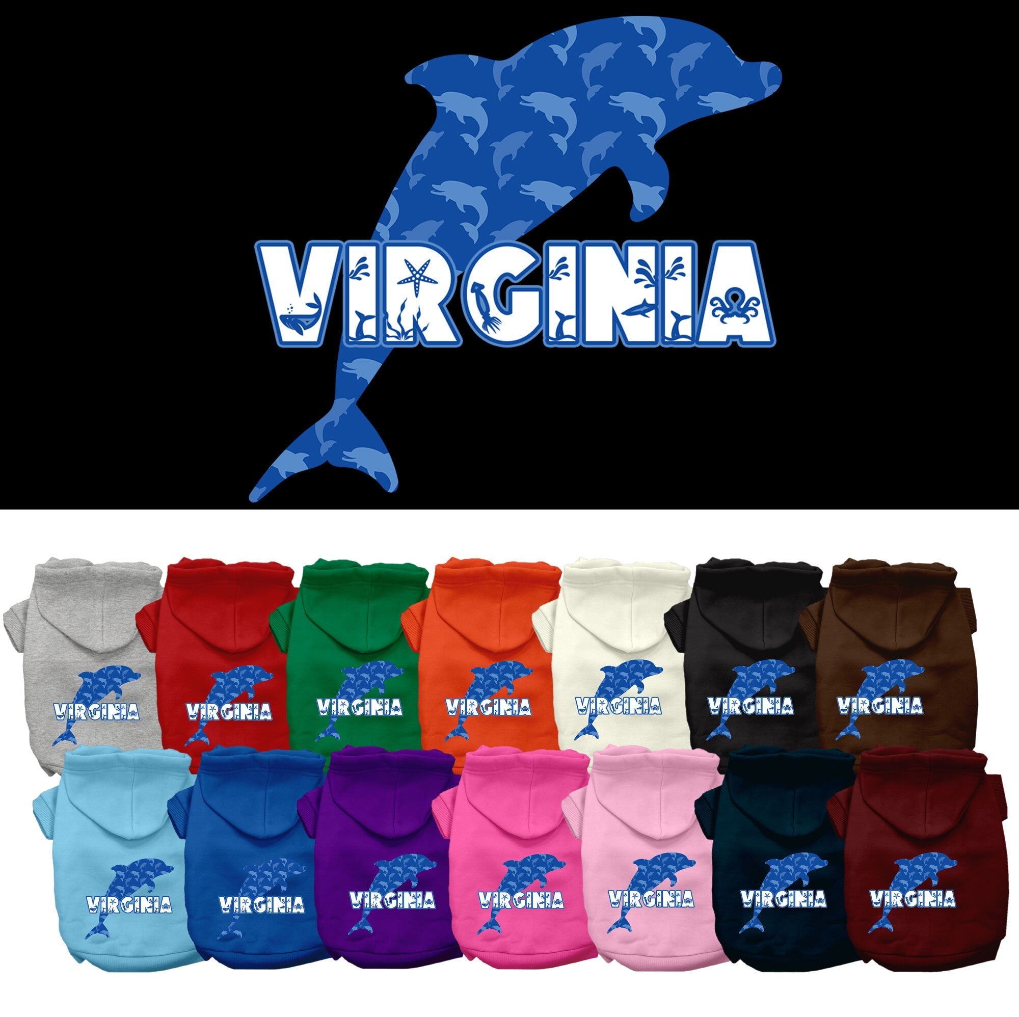 Pet Dog & Cat Screen Printed Hoodie for Small to Medium Pets (Sizes XS-XL), "Virginia Blue Dolphins"