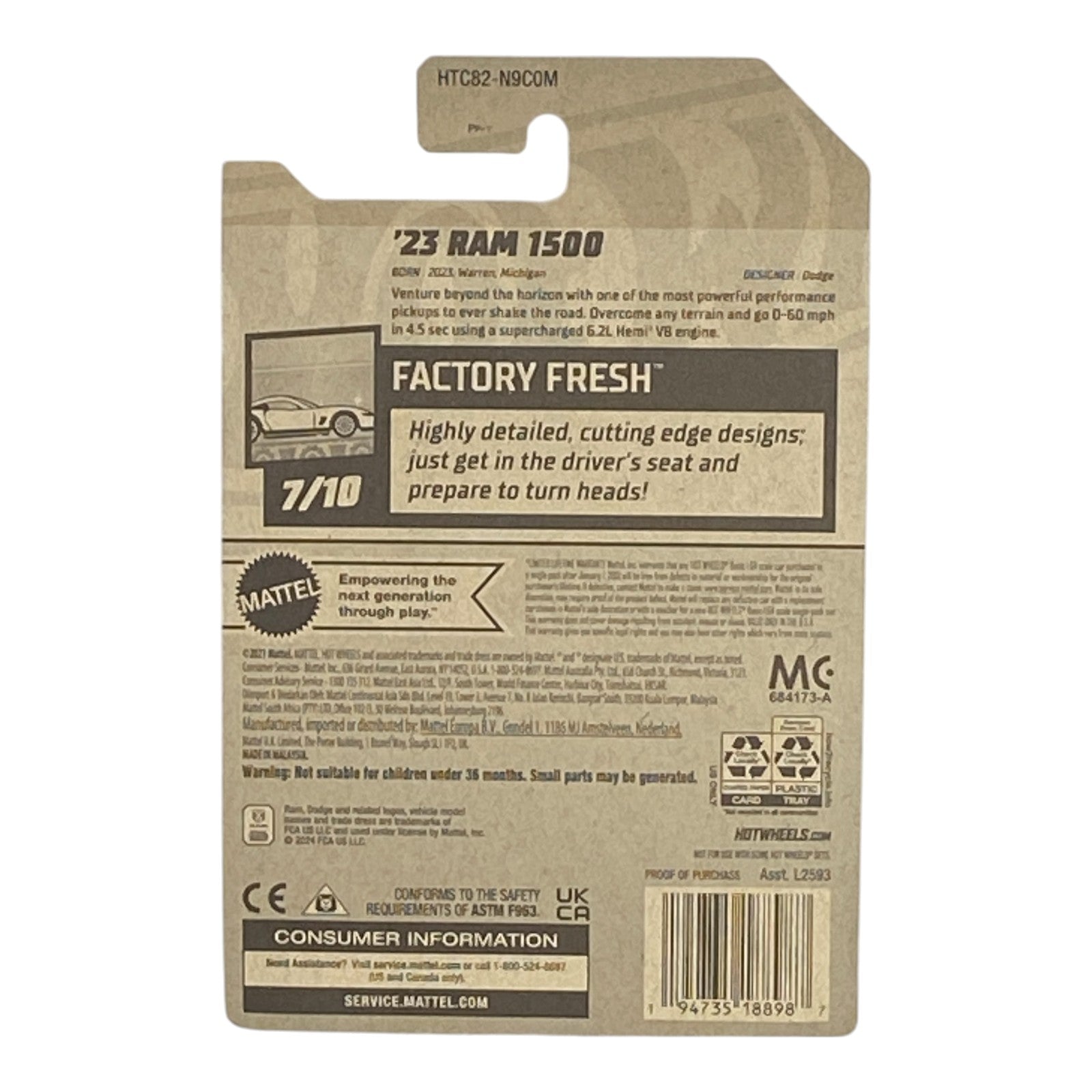 Hot Wheels '23 Ram 1500 is a must-have for collectors and enthusiasts alike! This stunning model from the Factory Fresh Series brings the iconic Ram 1500 to life, showcasing its sleek design and powerful features. Whether you're adding to your collection or looking for a perfect gift, the Hot Wheels '23 Ram 1500 is sure to impress.