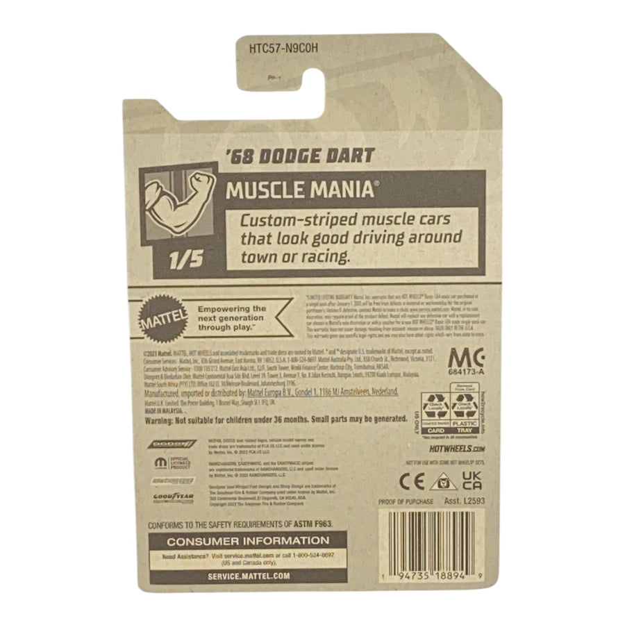 Hot Wheels '68 Dodge Dart - part of the Muscle Mania Series - is a stunning die-cast model that captures the essence of classic American muscle cars. Known for its sleek design and powerful performance, this collectible item is loved by enthusiasts and collectors alike. With attention to detail and craftsmanship, the Hot Wheels '68 Dodge Dart stands out as a true representation of automotive history.