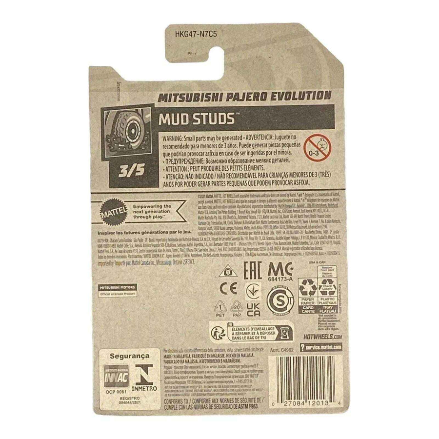 Featuring a dynamic design, the Hot Wheels Mitsubishi Pajero Evolution stands out with its eye-catching aesthetics and robust features. Built for adventure, this model is part of the Mud Studs Series 3/5, emphasizing its capability to tackle any terrain.