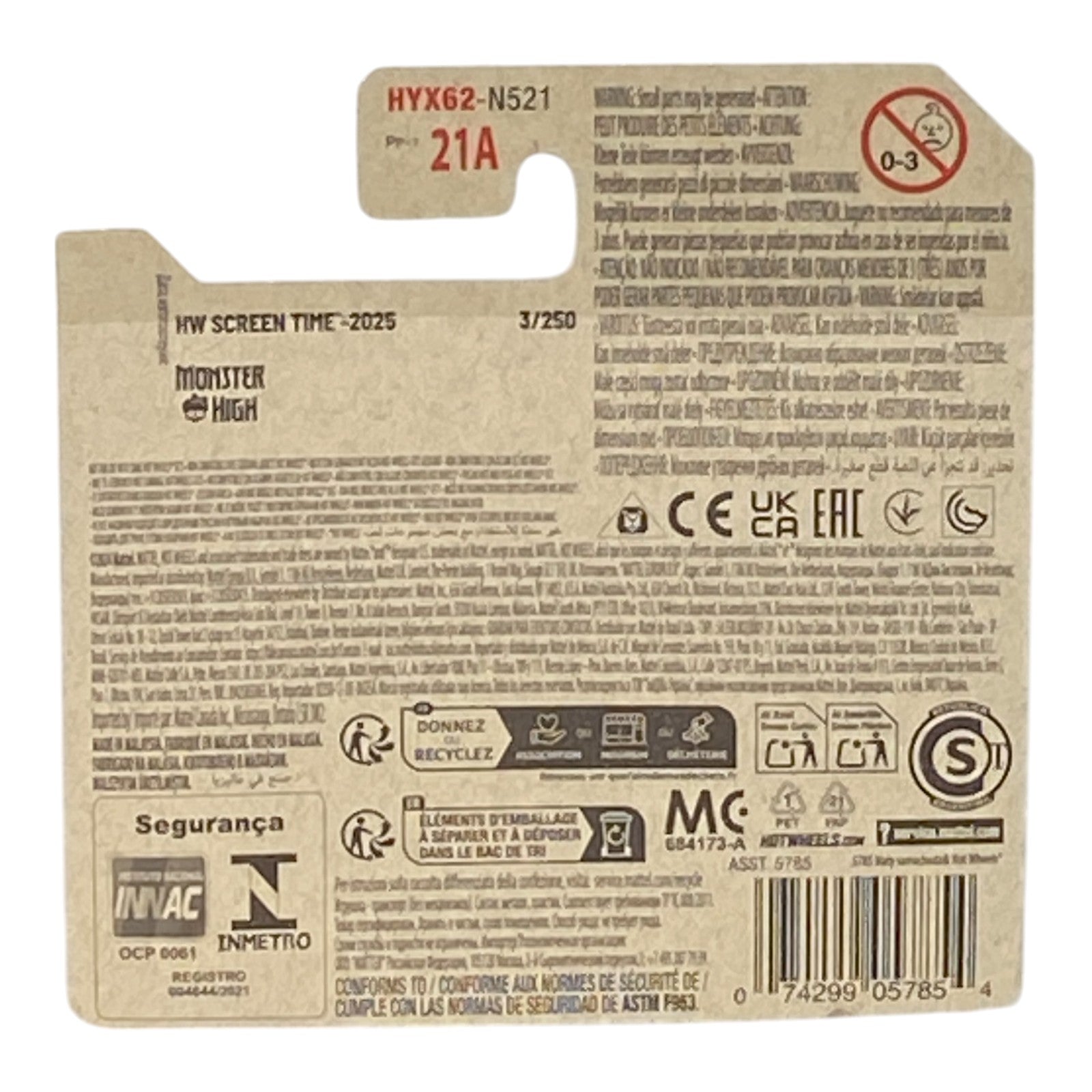 The Hot Wheels Monster High Ghoul Mobile is a thrilling addition to any collector's array. This iconic vehicle, part of the Screen Time Series, brings to life the adventurous spirit of the Monster High gang. From the moment you lay eyes on this unique ride, you’ll be captivated by its design, which perfectly encapsulates the style of the beloved characters from the Monster High universe.