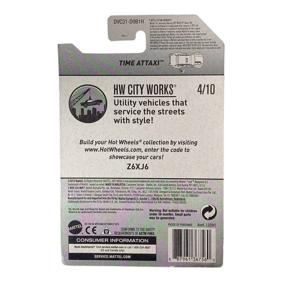 Hot Wheels Time Attaxi is an exhilarating addition to the Hot Wheels collection, offering fans of all ages the chance to experience high-speed thrills in miniature form. This model is part of the Need for Speed No Limits - City Works Series, known for its incredible attention to detail and vibrant aesthetics. Designed for those who appreciate speed and performance, the Hot Wheels Time Attaxi is a must-have for collectors and racing enthusiasts alike.