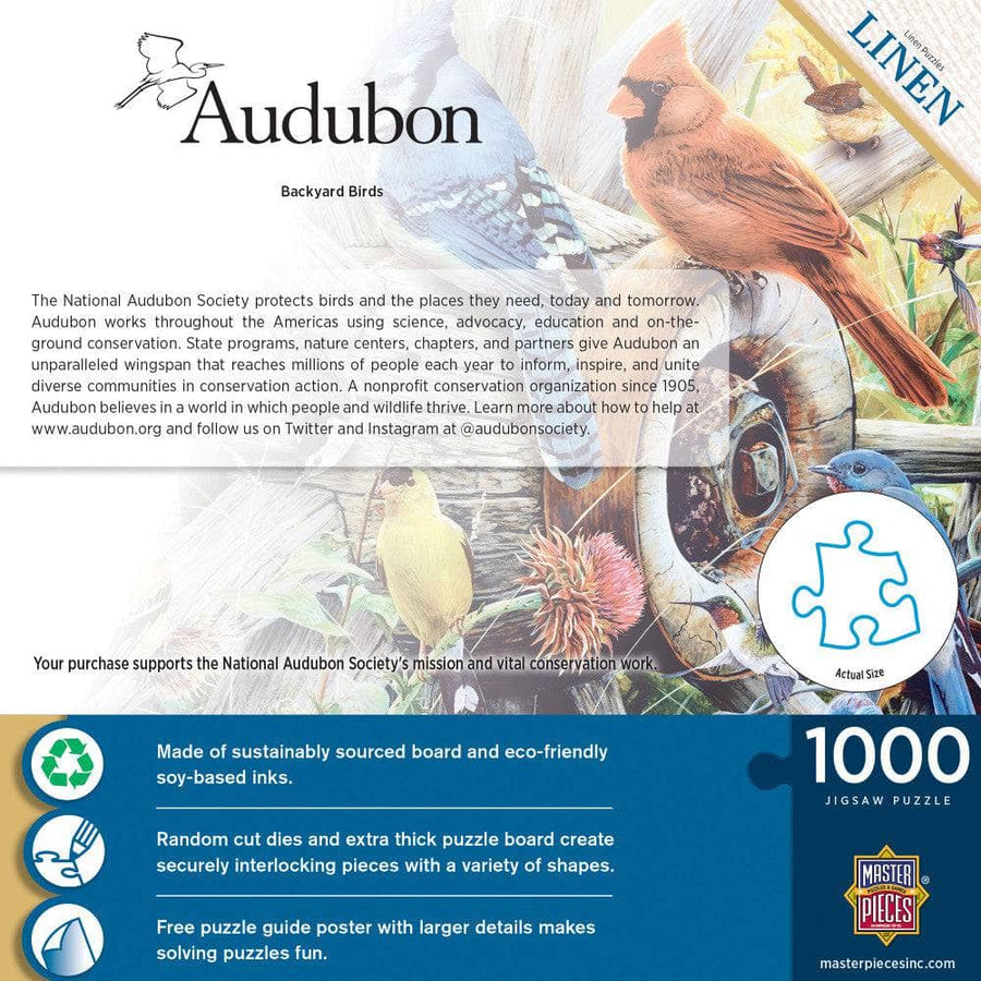 This MasterPieces 19.25" x 26.75" 1000pc Audubon Puzzle is full of colorful beautiful songbirds of North America and sponsored by the National Audubon Society. To reduce its impact on our environment, the chipboard used in this puzzle is made of 100% recycled material.