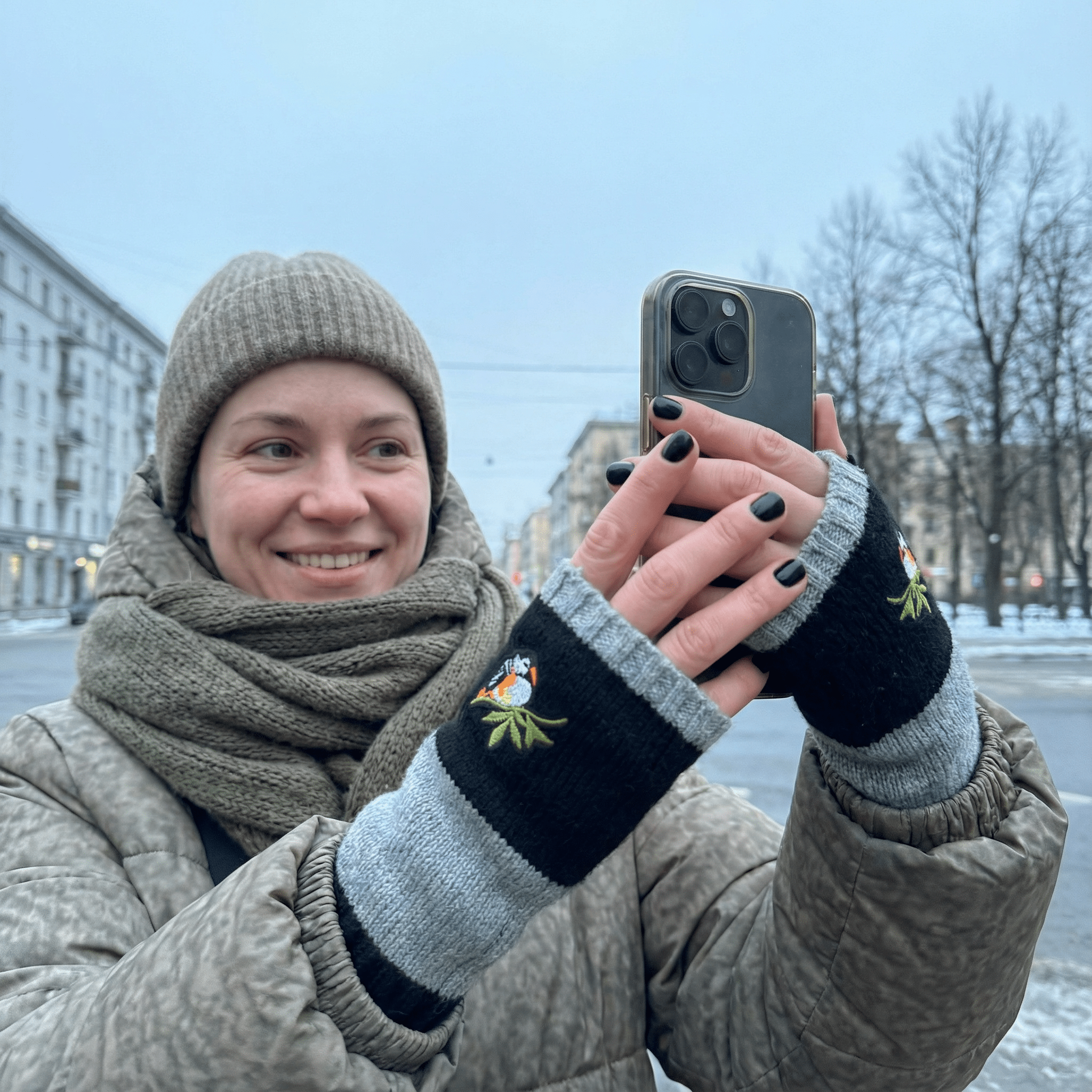 Whether you’re typing, reading, or sipping your favorite warm drink, these arm warmers keep your hands toasty while letting your fingers stay free for life’s little tasks. Each pair features a lovely bird applique, adding a touch of whimsy and heart to your look.