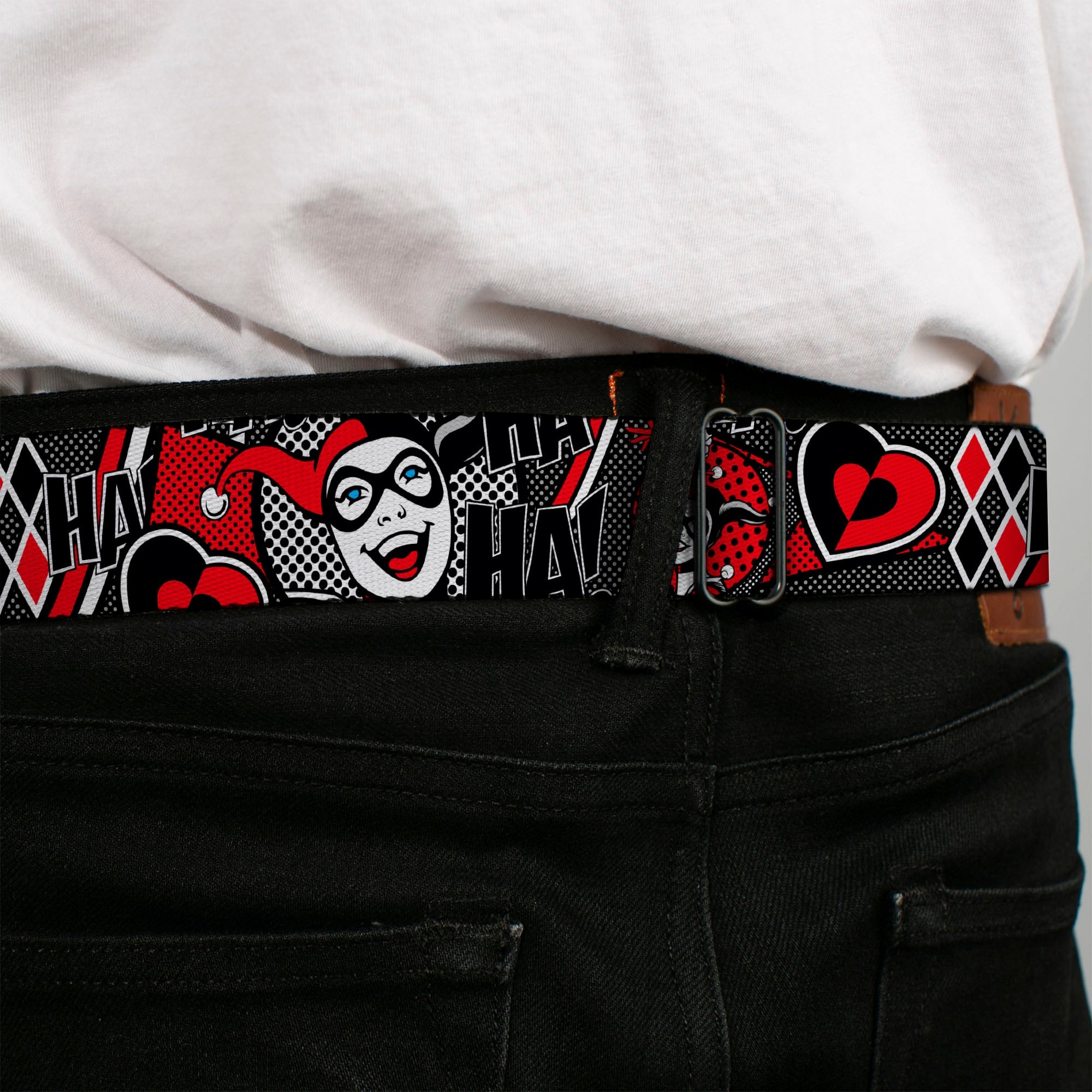 Buckle-Down's iconic Seatbelt Belt is a cool, smart, and exciting blend of fashion and function. Always a conversation starter, our Seatbelt Belt adjusts to perfectly fit your waist while showcasing your unique sense of style. Our Seatbelt Belts are made with authentic automotive style seatbelt buckles making them easy to open and close at the push of a button. Our adult-size Seatbelt Belts are 1.5 inches wide and our kid-sized Seatbelt belts are 1.0 inch wide. This product is Handcrafted in USA by Buckle-Down Inc. and officially licensed by DC Comics.