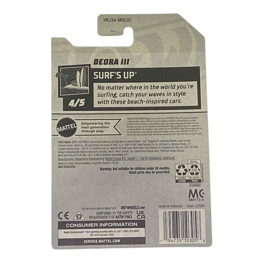 Grab the blue Hot Wheels Deora III Surf's Up 4/5 now and hang ten in your collection! Perfect gift for surfers, custom car fans, and die-cast enthusiasts.