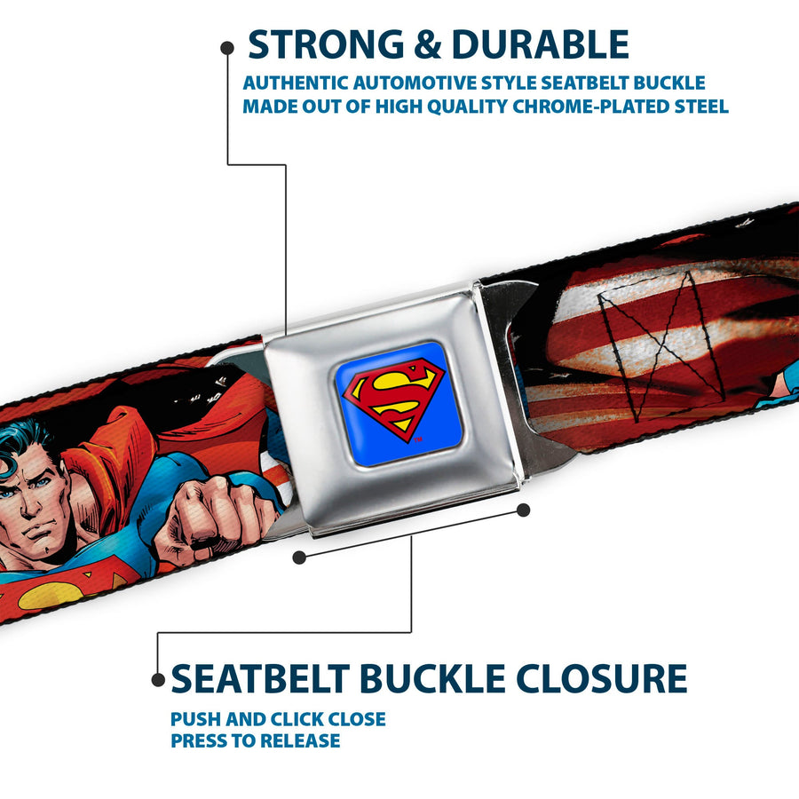Buckle-Down's iconic Seatbelt Belt is a cool, smart, and exciting blend of fashion and function. Always a conversation starter, our Seatbelt Belt adjusts to perfectly fit your waist while showcasing your unique sense of style. Our Seatbelt Belts are made with authentic automotive style seatbelt buckles making them easy to open and close at the push of a button. Our adult-size Seatbelt Belts are 1.5 inches wide and our kid-sized Seatbelt belts are 1.0 inch wide. This product is Handcrafted in USA by Buckle-Down Inc. and officially licensed by DC Comics.