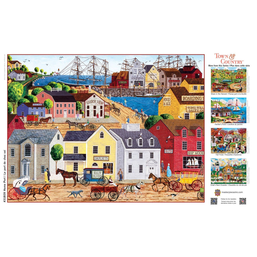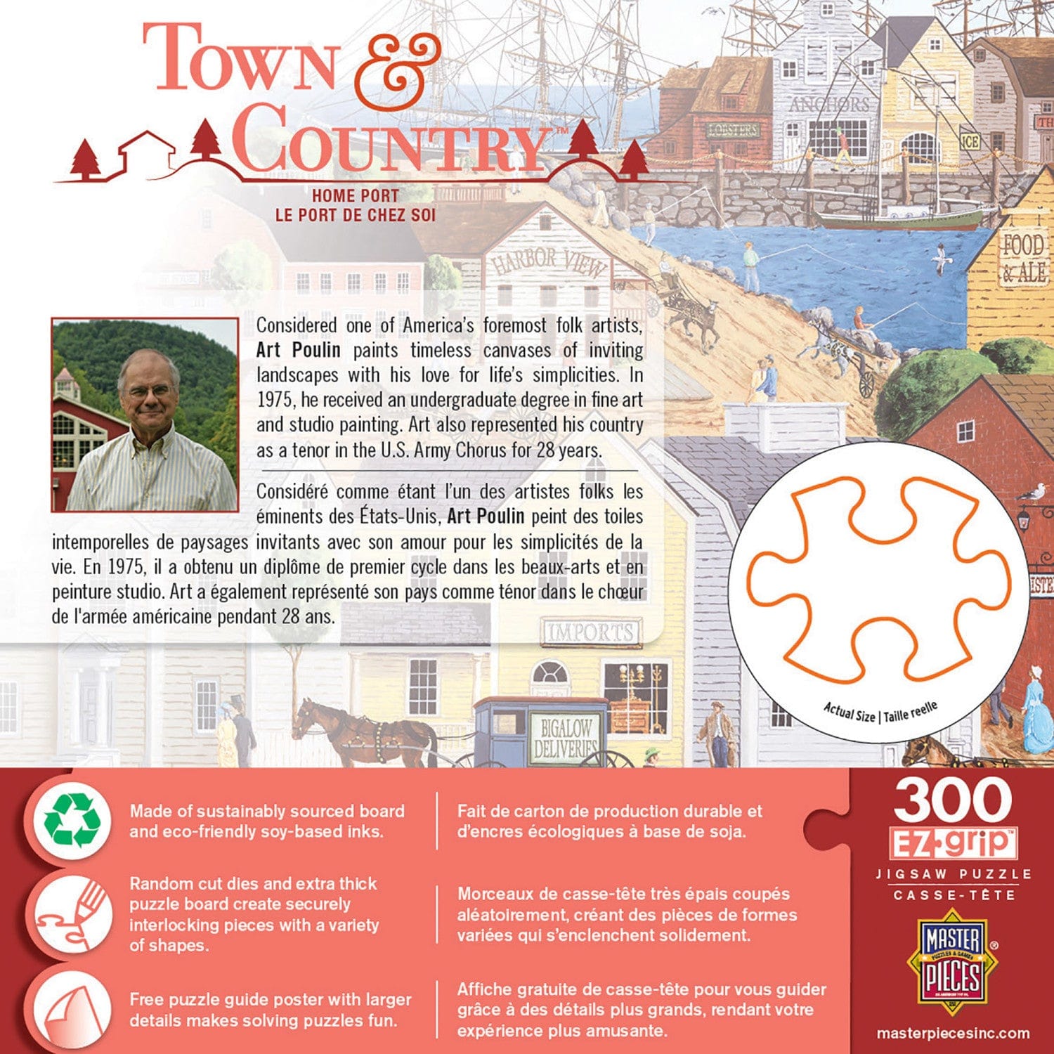 This MasterPieces 18" x 24" 300PC EZ Grip Town & Country Puzzle is the perfect way to sit back, relax, and enjoy the simple pleasures in life. With featured art of the incredibly talented folk artist, Art Poulin. This Town & Country collection of Home Port Puzzle features a folksy port side village. This puzzle is sure to offer you an afternoon of puzzling fun! The EZ-Grip die-cut used to make this puzzle offers larger puzzle pieces for easier visual and grip that snap together perfectly, without compromising image quality. To reduce their impact on our environment, the chipboard used in these puzzles is made of 100% recycled material.