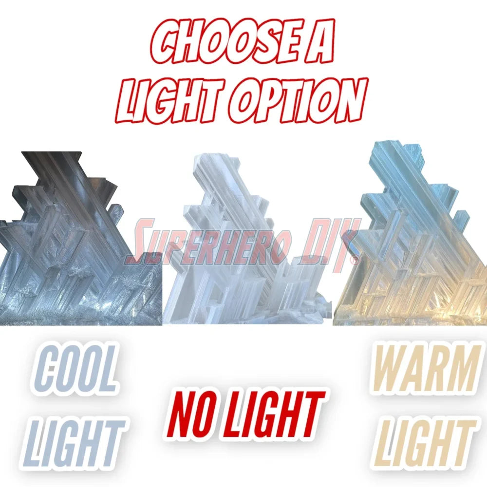 Standing 12" tall x 12.5" wide x 7" deep, this angled crystal-style backdrop gives your figure the ultimate frozen HQ vibe. With jagged geometric design and towering crystal formations, it’s not just a place to stand - it's a frozen ice command post to fly out from!