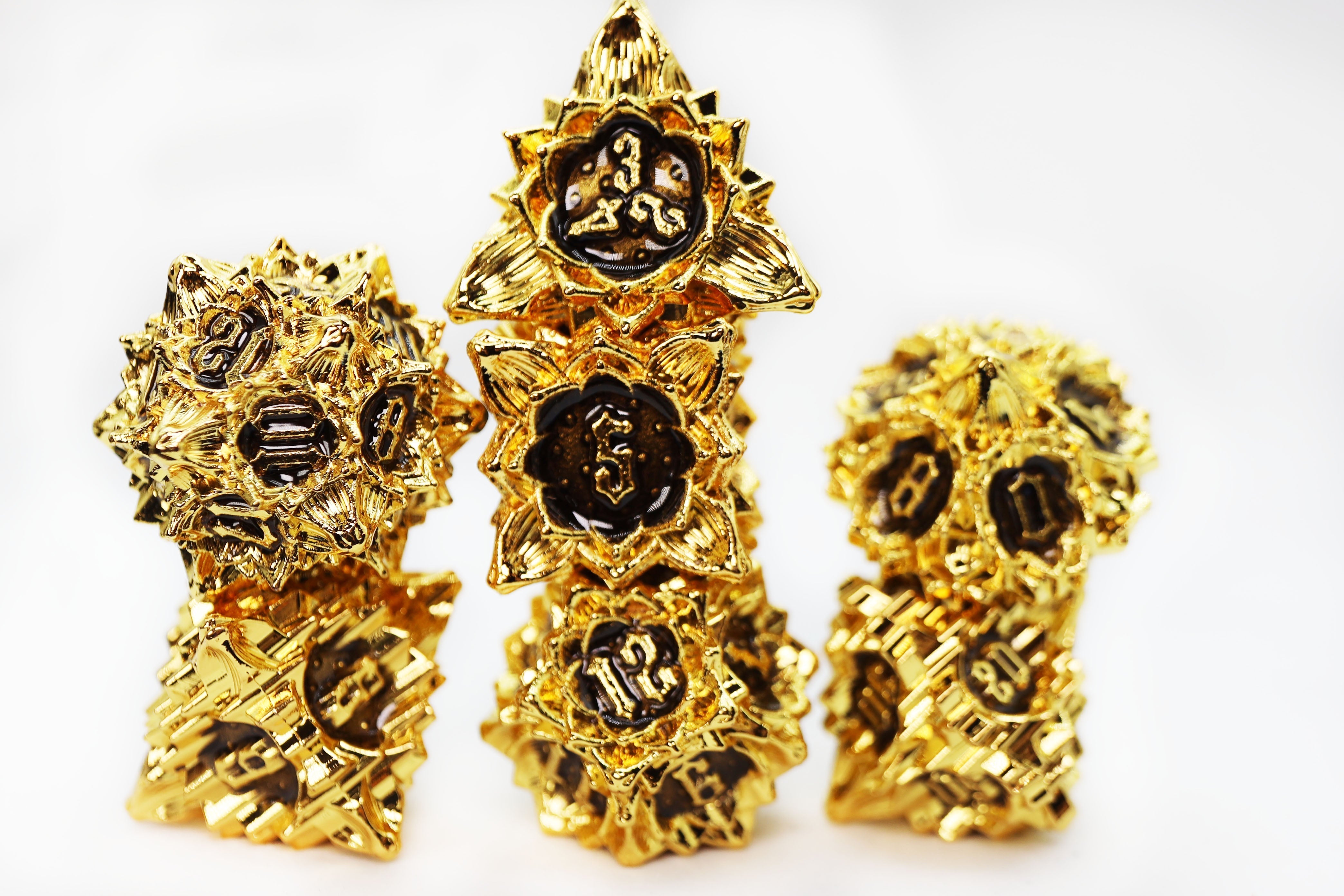 Floral Starburst: Blackout Viola - Metal RPG Dice Set