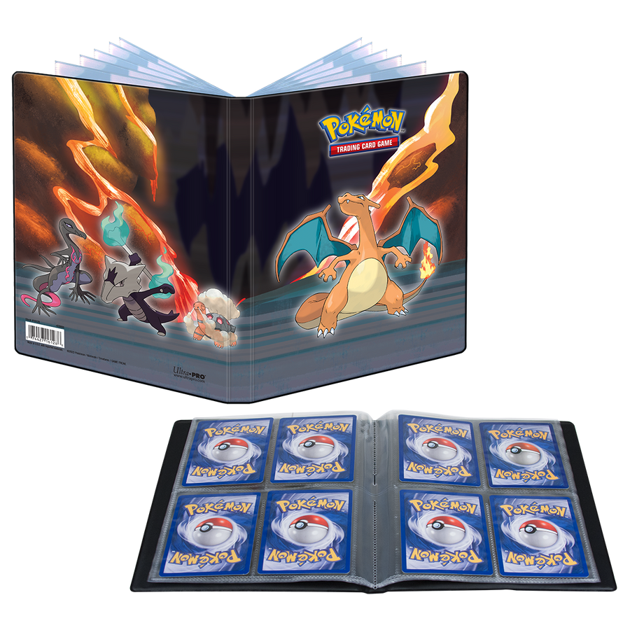 • Officially licensed Pokémon Trading Card Game 4-Pocket Portfolio featuring Charizard, Salazzle, Torkoal, and Alolan Marowak