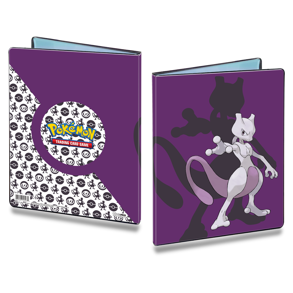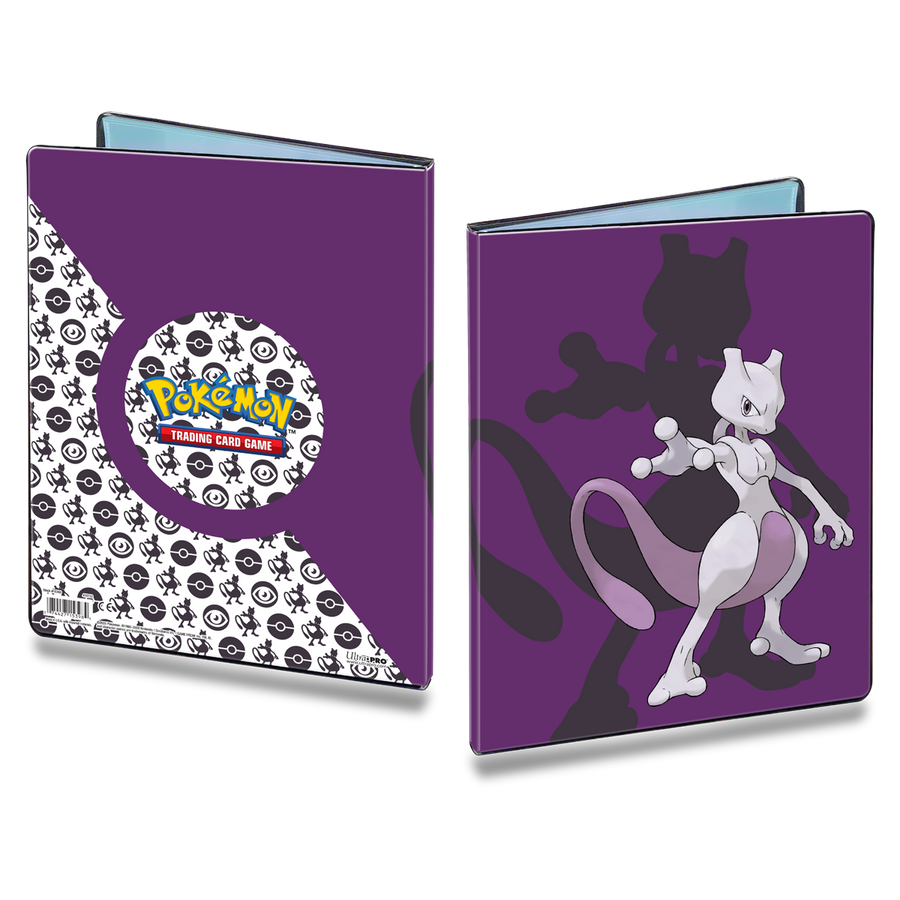 Keep your collection organized and safe with this official Pokémon 9-pocket portfolio. Each portfolio holds 90 collectible cards single-loaded or 180 cards double-loaded. The portfolio features the iconic Mewtwo . Behind the vibrant, full-color cover are 10 high-clarity, archival-safe polypropylene pages with pockets sized to fit standard (2.5" x 3.5") size trading cards in Deck Protector sleeves. Made in California, U.S.A