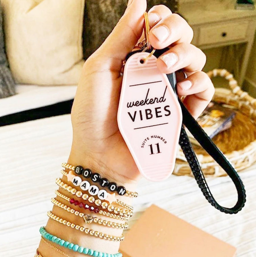 Weekend Vibes Motel Style Keychain with Gold Hardware