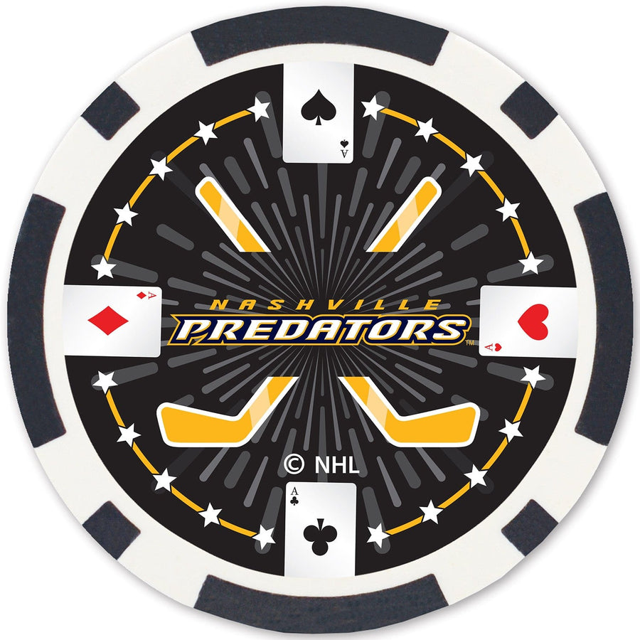 Looking for a great way to support your favorite team? Look no further than these MasterPieces officially licensed NHL Nashville Predators 124 Piece Casino Style Poker Chips! These heavy 11.5-gram casino-style poker chips are perfect for Texas Hold'EM, Blackjack, and other card games. The set contains 100 chips in a black tray, each with two team designs. Whether you're playing for fun or in a tournament, these officially licensed poker chips are the perfect choice for all fans of the Nashville Predators. Show your team pride, win in style, and always play with your teams Poker Chips!