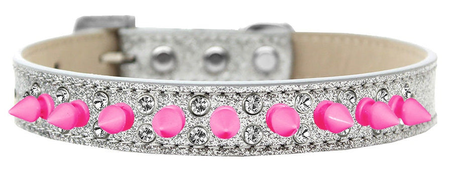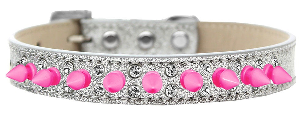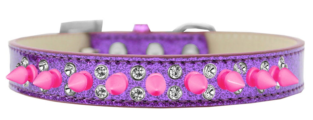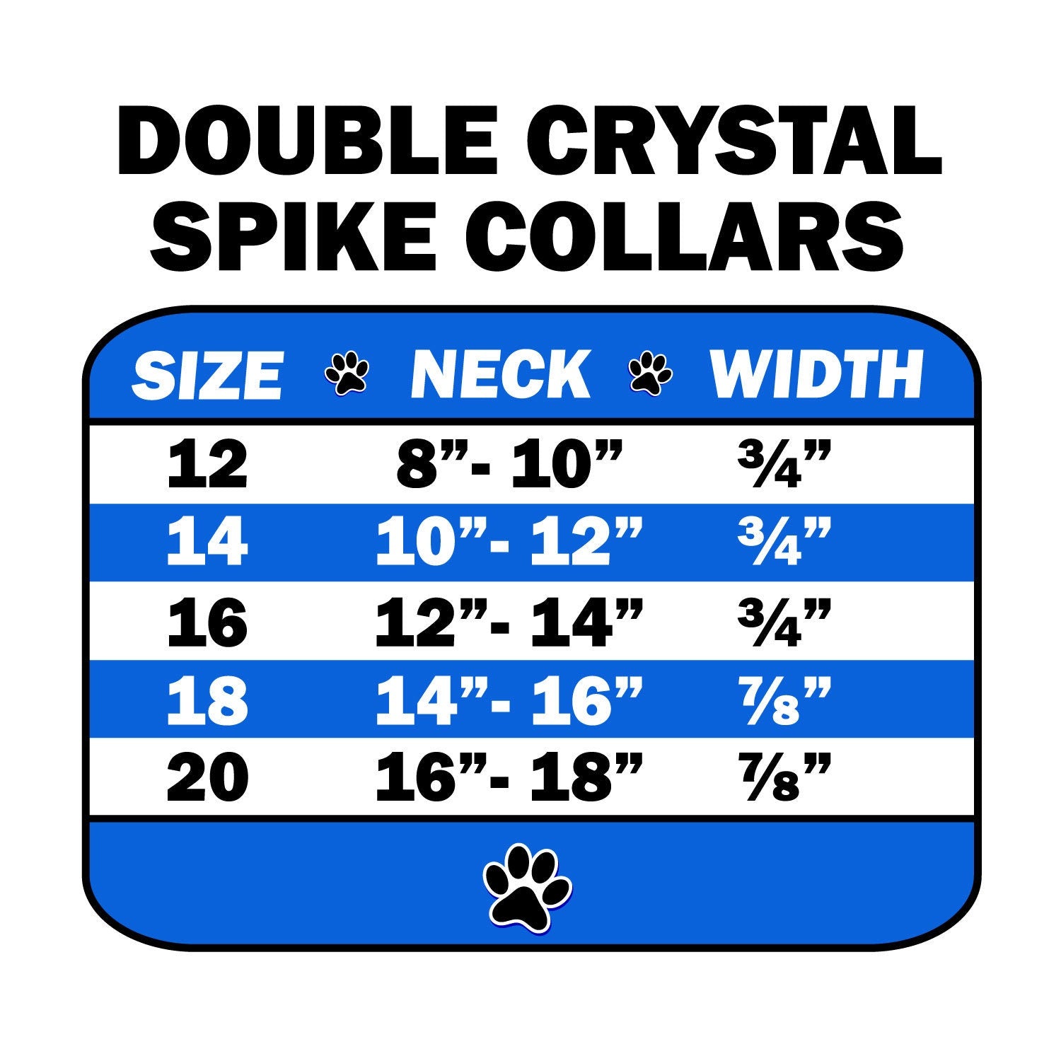 Add sophistication and elegance to your fur baby's wardrobe with a dazzling Double Row Crystal & Spike Ice Cream Dog Collar! These stunning collars are 3/4" wide collar with two rows of clear crystals enhanced with bright pink spikes.