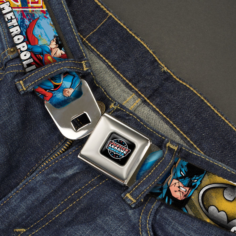 Buckle-Down's iconic Seatbelt Belt is a cool, smart, and exciting blend of fashion and function. Always a conversation starter, our Seatbelt Belt adjusts to perfectly fit your waist while showcasing your unique sense of style. Our Seatbelt Belts are made with authentic automotive style seatbelt buckles making them easy to open and close at the push of a button. Our adult-size Seatbelt Belts are 1.5 inches wide and our kid-sized Seatbelt belts are 1.0 inch wide. This product is Handcrafted in USA by Buckle-Down Inc. and officially licensed by DC Comics.
