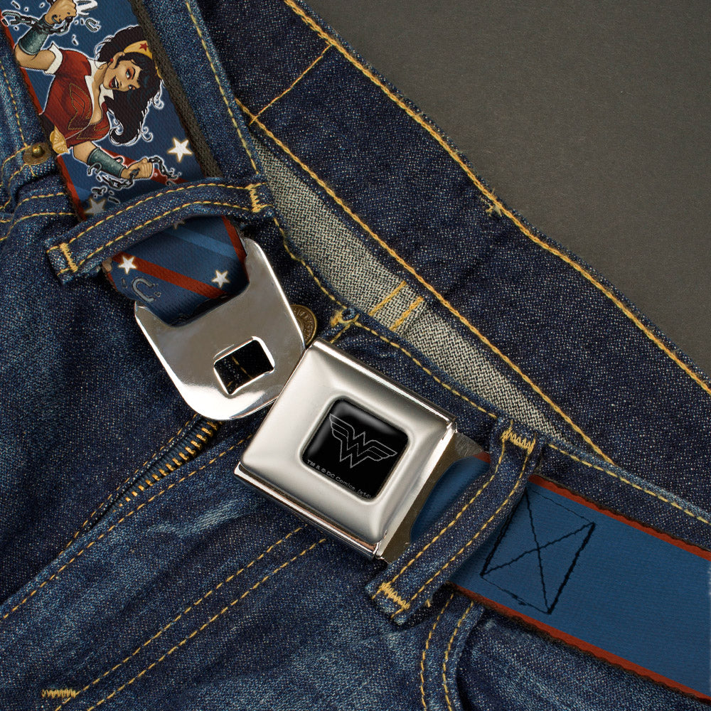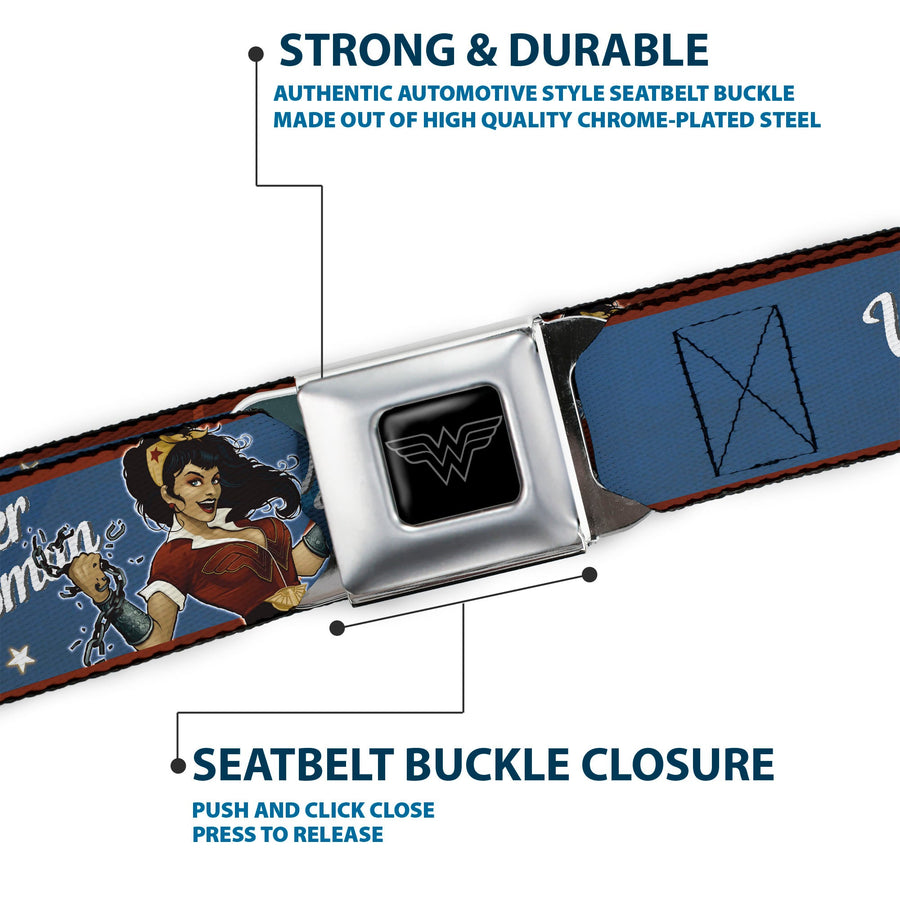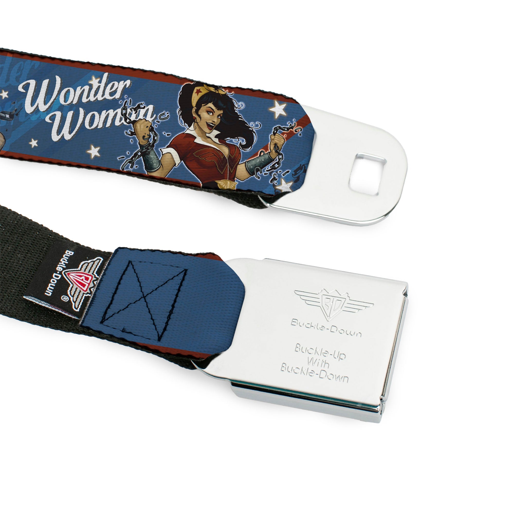 Buckle-Down's iconic Seatbelt Belt is a cool, smart, and exciting blend of fashion and function. Always a conversation starter, our Seatbelt Belt adjusts to perfectly fit your waist while showcasing your unique sense of style. Our Seatbelt Belts are made with authentic automotive style seatbelt buckles making them easy to open and close at the push of a button. Our adult-size Seatbelt Belts are 1.5 inches wide and our kid-sized Seatbelt belts are 1.0 inch wide. This product is Handcrafted in USA by Buckle-Down Inc. and officially licensed by DC Comics.