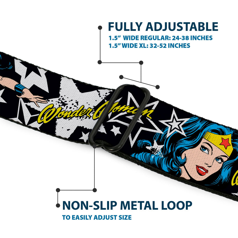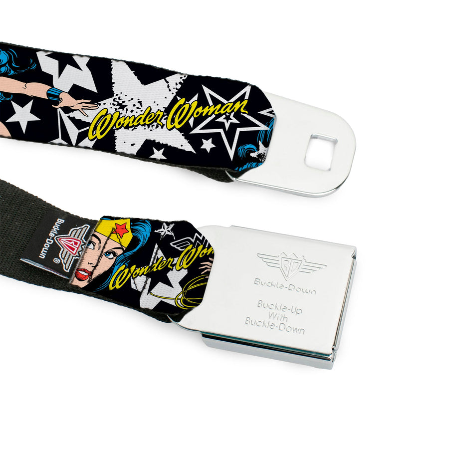 Buckle-Down's iconic Seatbelt Belt is a cool, smart, and exciting blend of fashion and function. Always a conversation starter, our Seatbelt Belt adjusts to perfectly fit your waist while showcasing your unique sense of style. Our Seatbelt Belts are made with authentic automotive style seatbelt buckles making them easy to open and close at the push of a button. Our adult-size Seatbelt Belts are 1.5 inches wide and our kid-sized Seatbelt belts are 1.0 inch wide. This product is Handcrafted in USA by Buckle-Down Inc. and officially licensed by DC Comics.