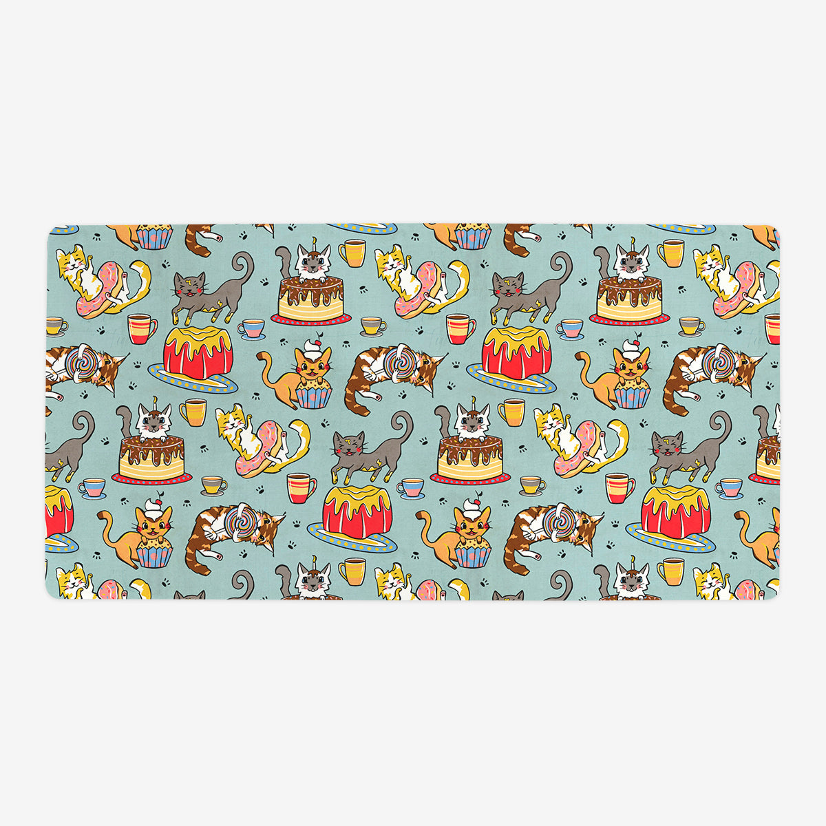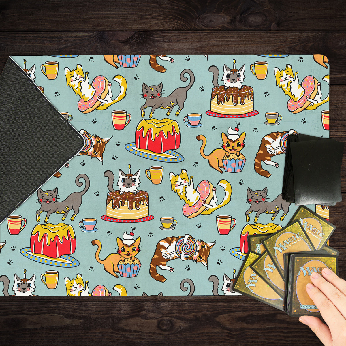 Standard Playmat measures at 24” x 14” inches and is 1/16 of an inch thick. It’s made with a smooth cloth top and strong rubber backing.