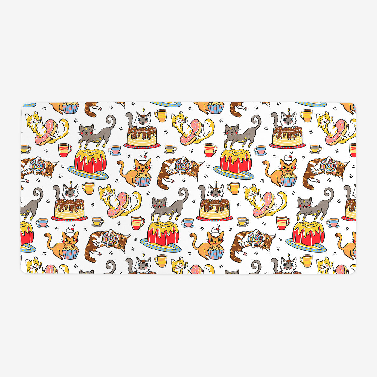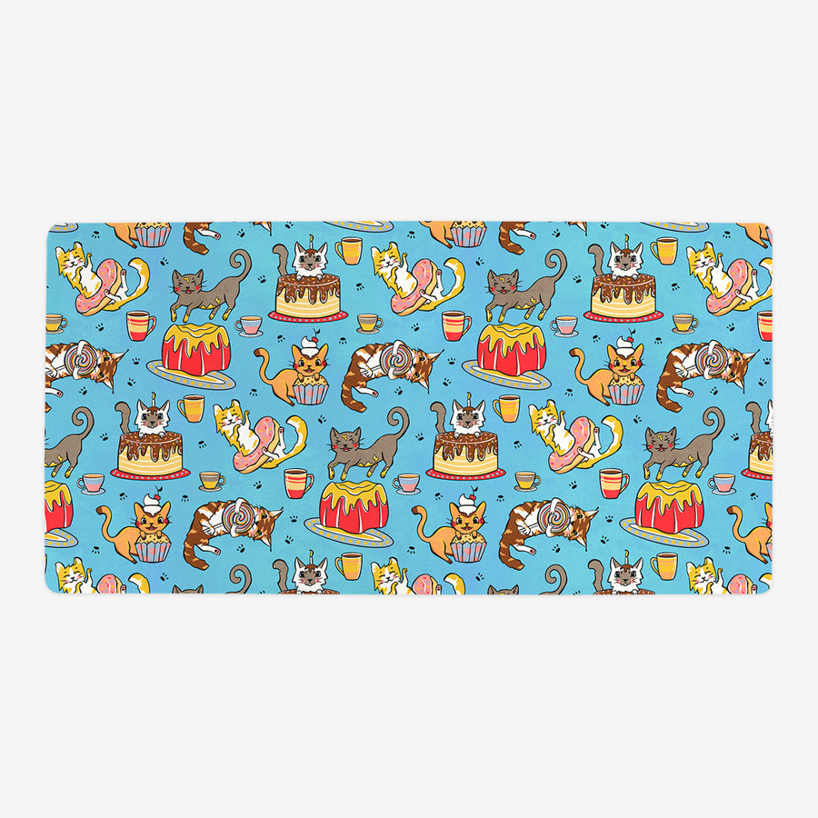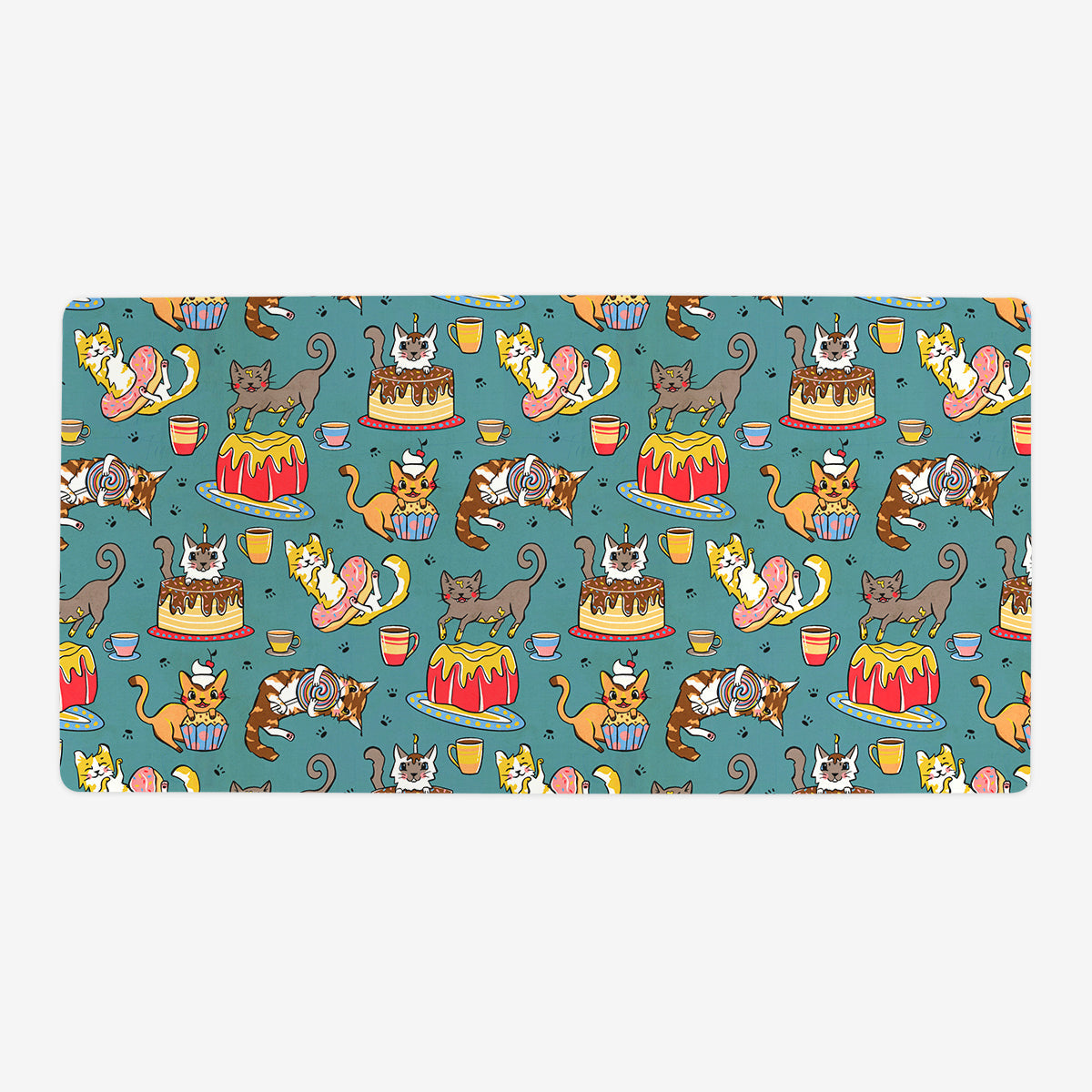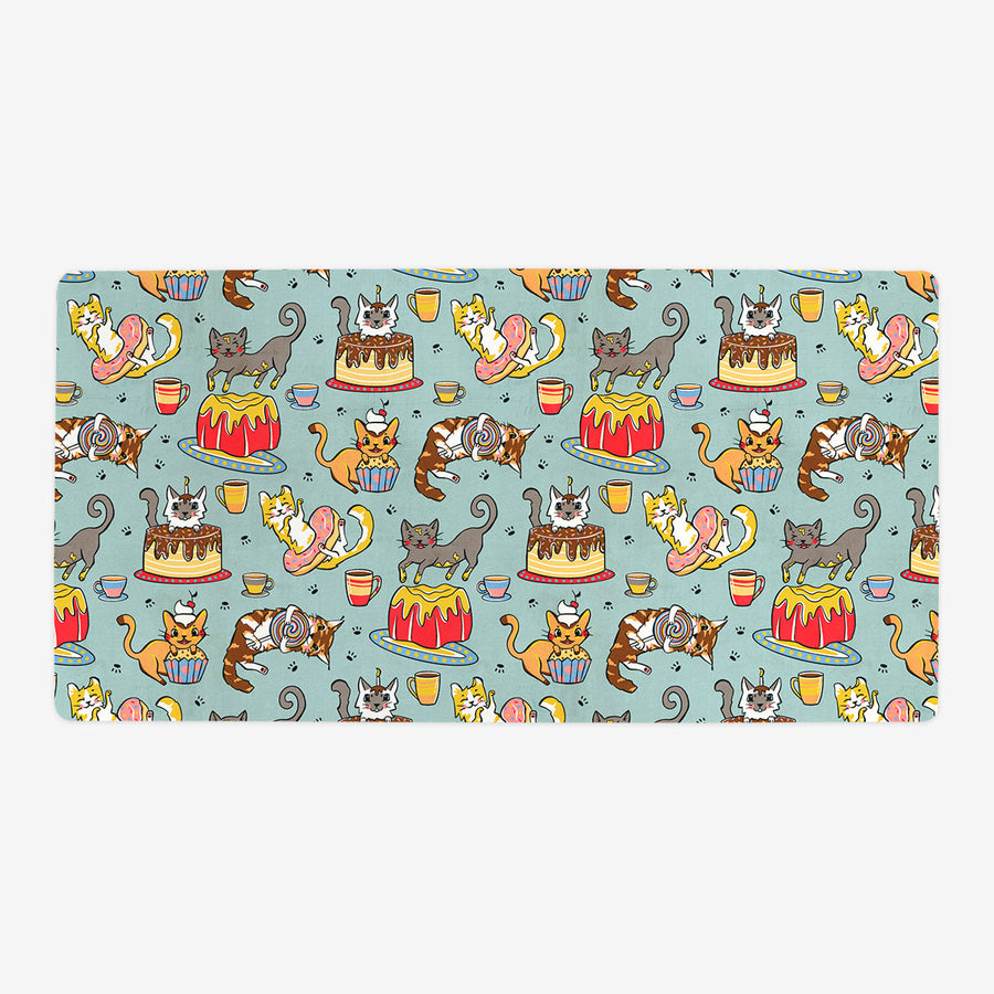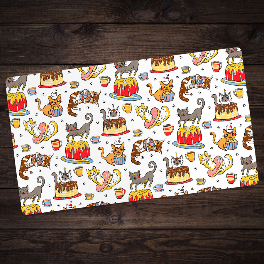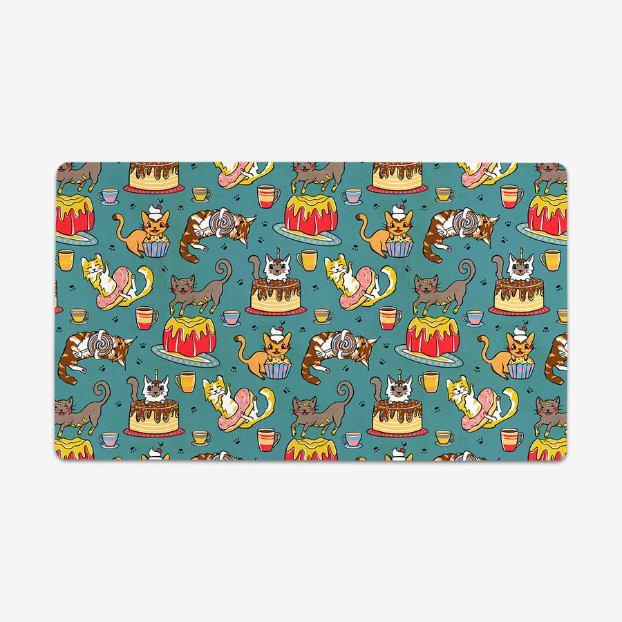Oversized Playmat measures at 28” x 14” inches and is 1/16 of an inch thick. It’s made with a smooth cloth top and strong rubber backing.