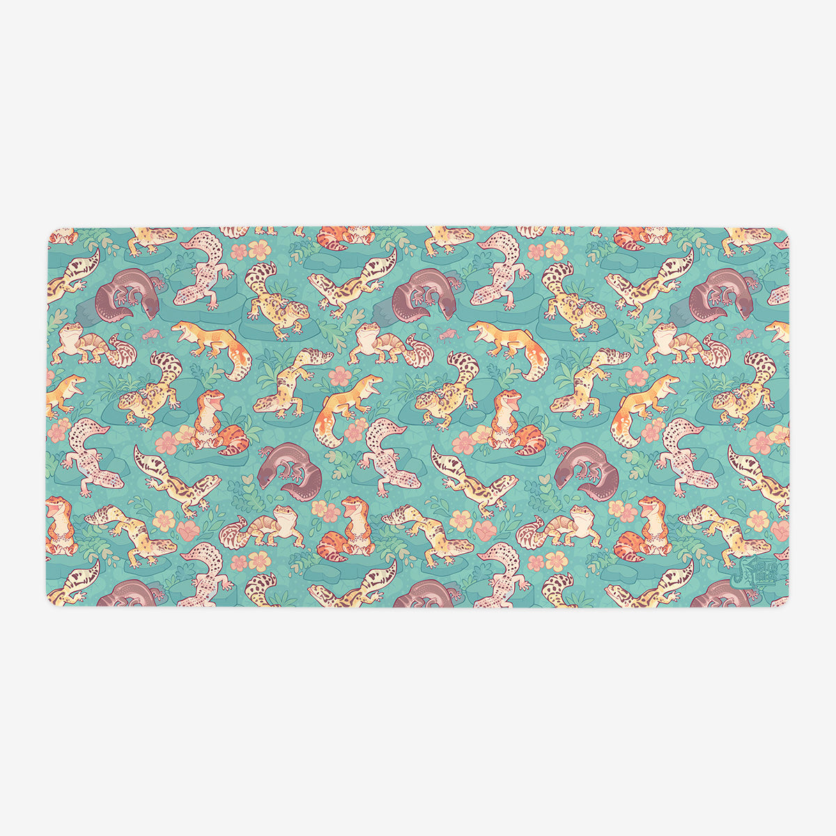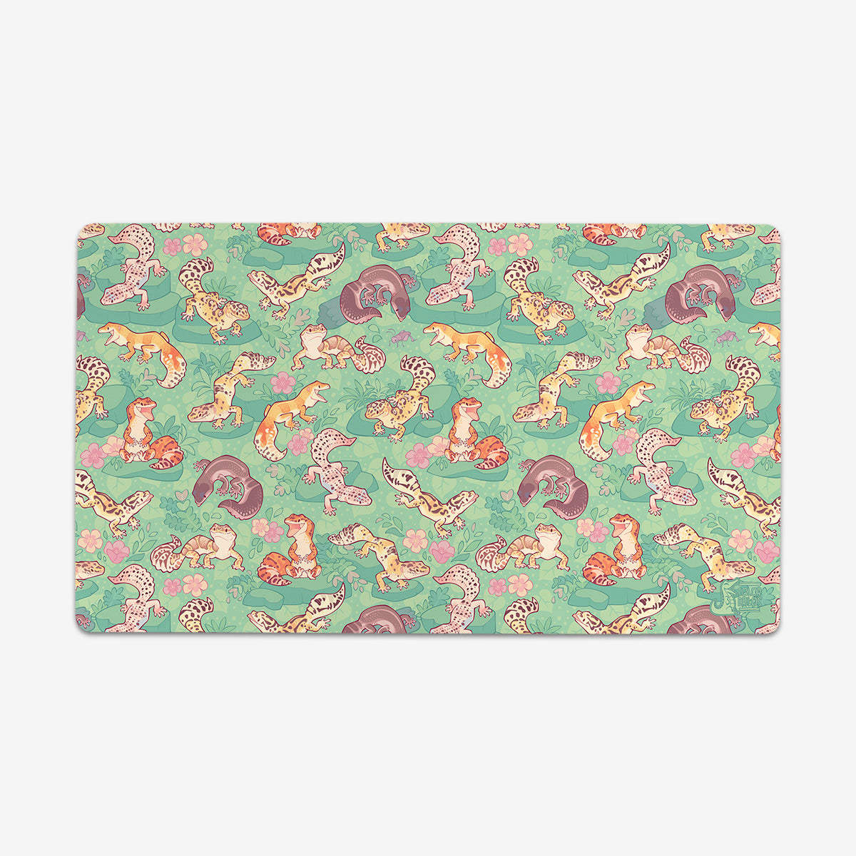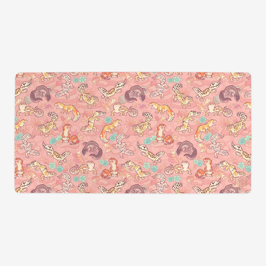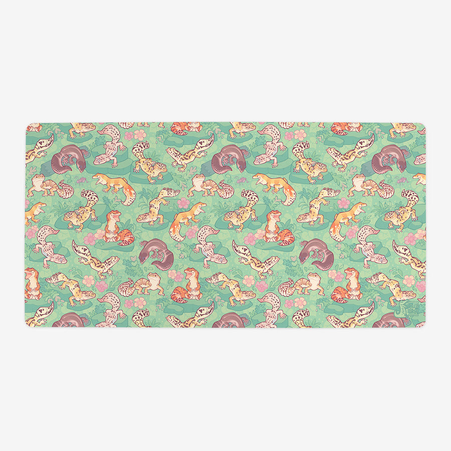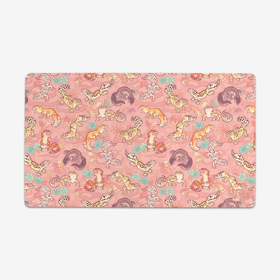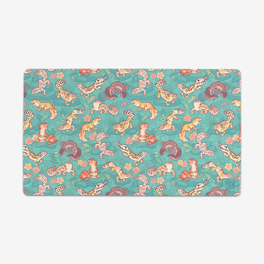 Standard Playmat measures at 24” x 14” inches and is 1/16 of an inch thick. It’s made with a smooth cloth top and strong rubber backing.