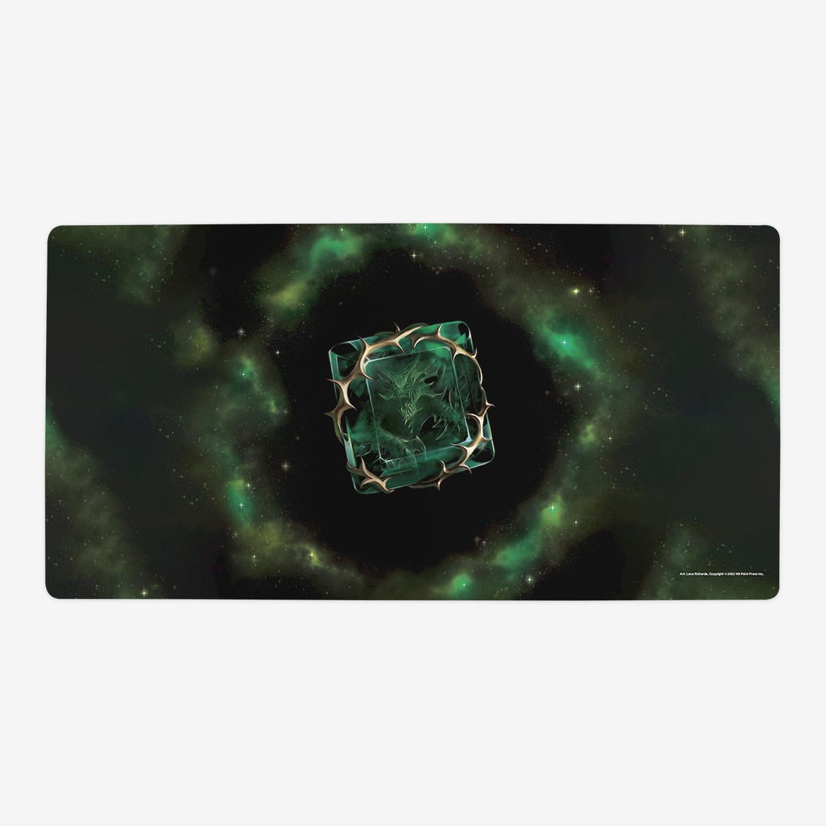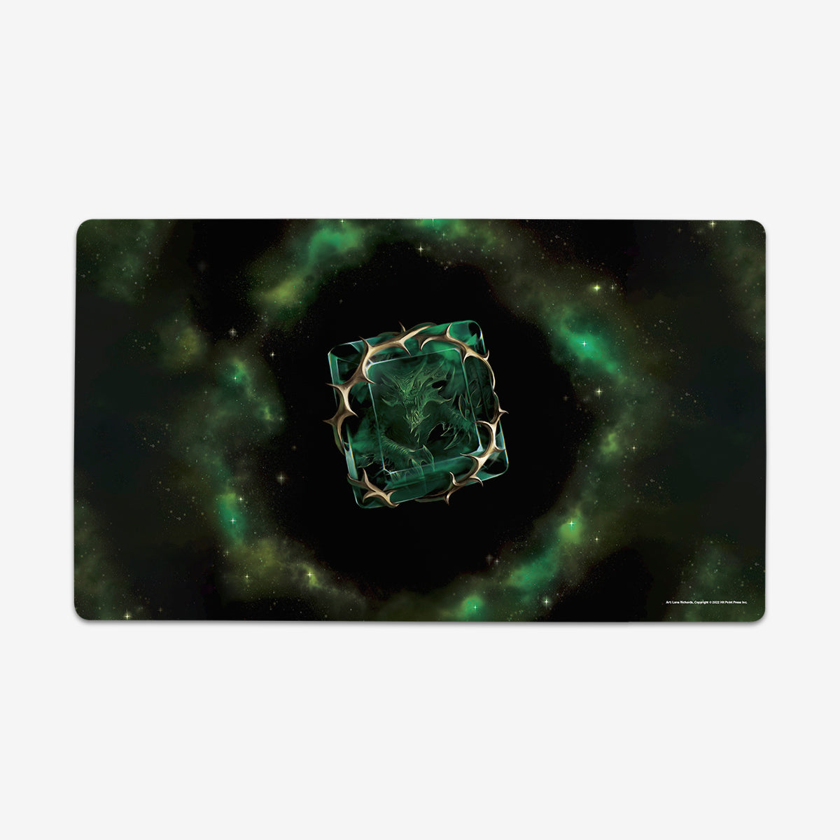 Oversized Playmat measures at 28” x 14” inches and is 1/16 of an inch thick. It’s made with a smooth cloth top and strong rubber backing.