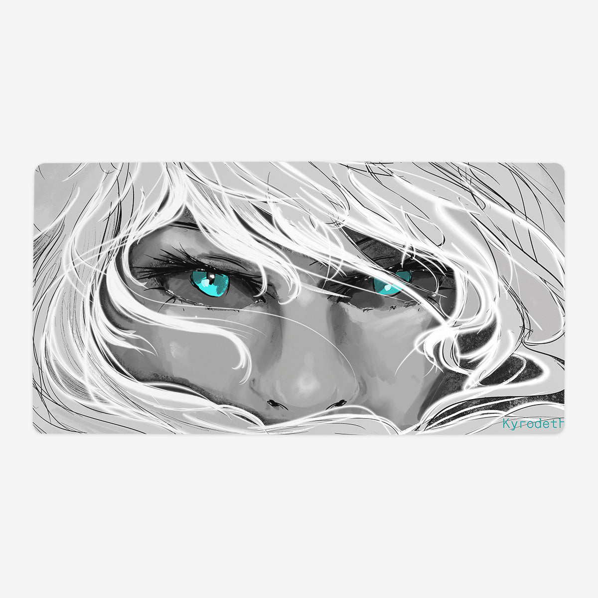 Oversized Playmat measures at 28” x 14” inches and is 1/16 of an inch thick. It’s made with a smooth cloth top and strong rubber backing.