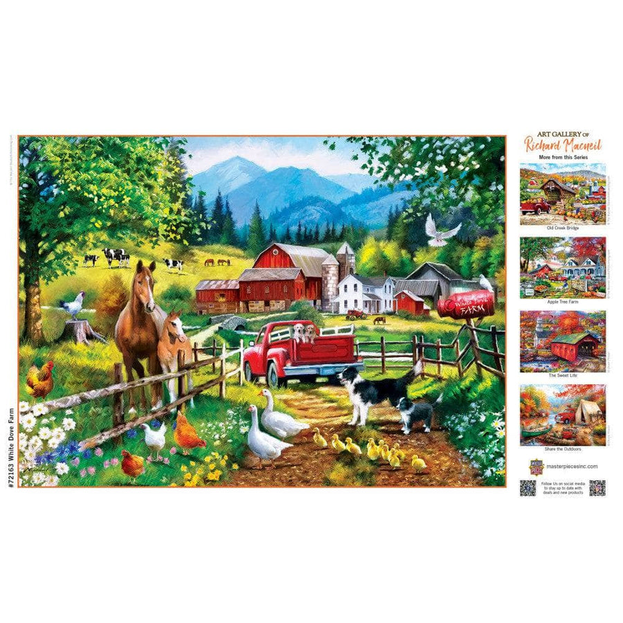 These MasterPieces 19.25" x 26.75" 1000pc Richard McNeil puzzles. Take a trip across the crystal clear mountain lake in a canoe for rent. Linen Finish on Packaging and Puzzle reduces and glare and creates a timeless classic look. To reduce their impact on our environment, the chipboard used in these puzzles is made of 100% recycled material.