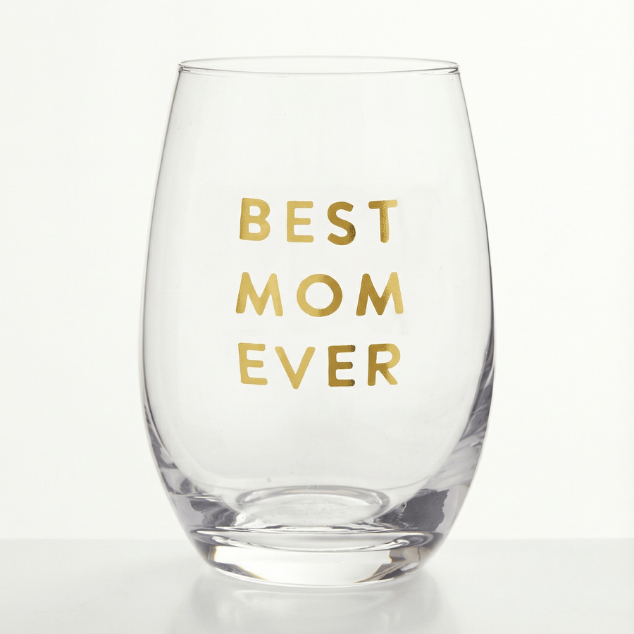 Celebrate the incredible moms in your life with this stemless wine glass featuring a lovely gold foil print of "Best Mom Ever," making it the perfect toast for Mother's Day.