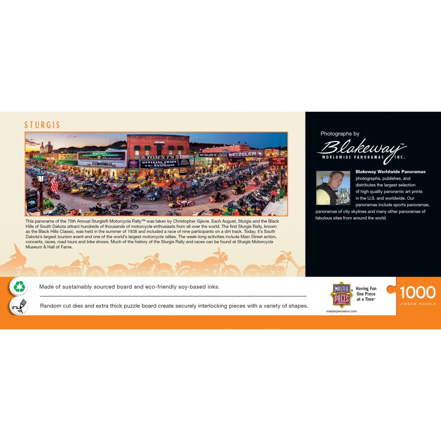 Introducing the American Vista Panoramic - Sturgis 1000 Piece Puzzle, a captivating and immersive jigsaw puzzle that brings the iconic Sturgis motorcycle rally to life in your own living room. Designed to challenge and delight puzzle enthusiasts of all ages, this high-quality puzzle captures the spirit and excitement of one of America's most legendary events. The Sturgis motorcycle rally, held annually in South Dakota, is a mecca for motorcycle enthusiasts from around the world. Now, you can experience the thrill and adventure of Sturgis from the comfort of your own home with this stunning puzzle. Featuring a breathtaking panoramic view of the rally, this puzzle takes you on a visual journey through the heart of the event. With 1000 intricately crafted pieces, this puzzle offers hours of immersive entertainment. Each piece is precisely cut to ensure a snug fit, allowing you to create a seamless and vibrant image. The puzzle is made from durable, high-quality materials that can withstand repeated use, ensuring that it can be enjoyed time and time again. The American Vista Panoramic - Sturgis 1000 Piece Puzzle is more than just a puzzle. It's an opportunity to explore the intricate details and hidden surprises within the image. From the sea of motorcycles and riders to the bustling streets lined with shops and vendors, every inch of this puzzle is filled with captivating scenes and fascinating characters.