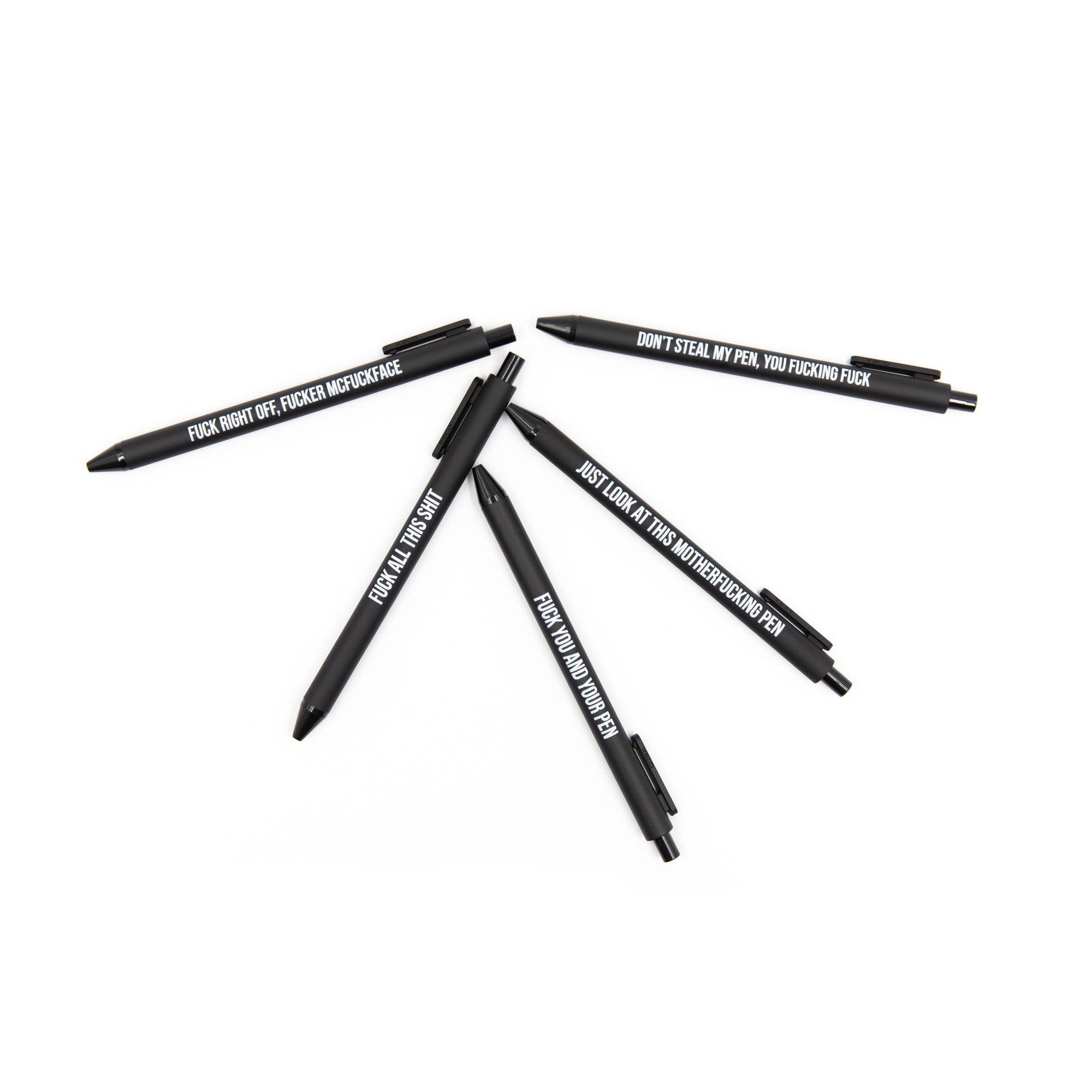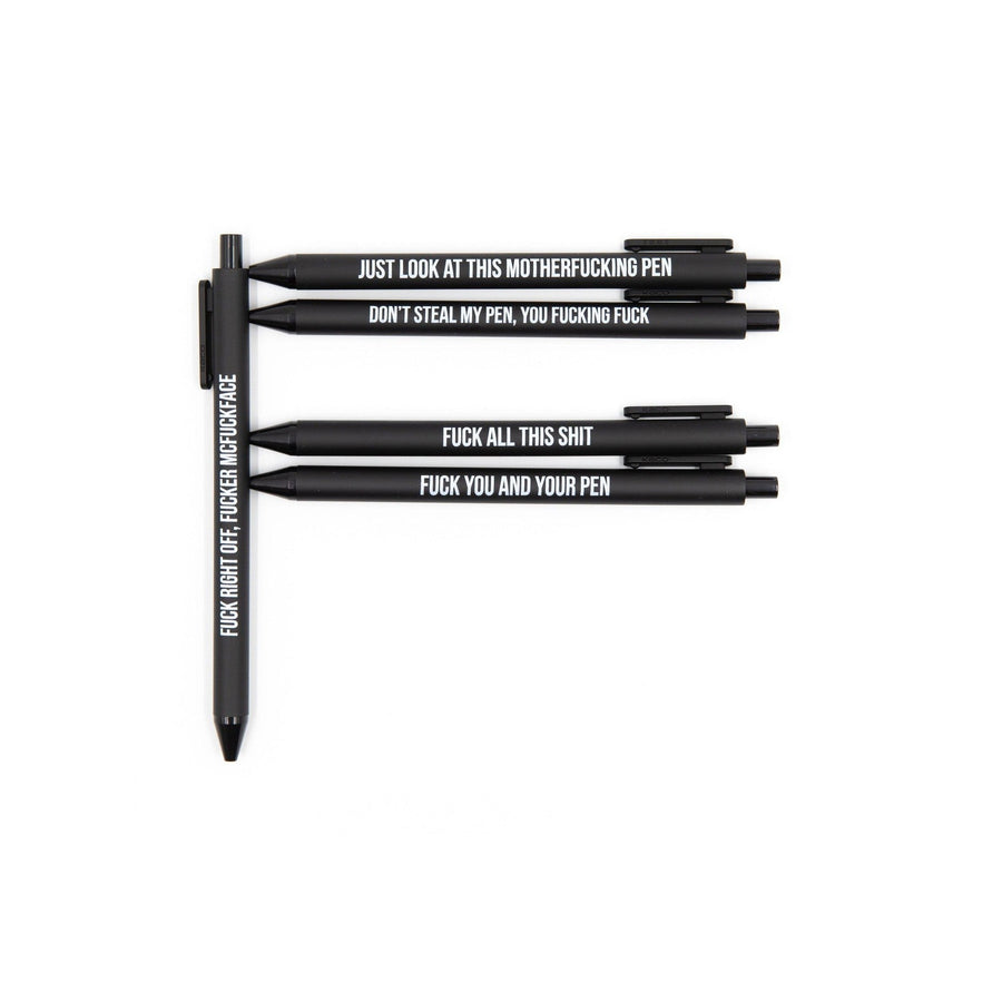 Sweary Fuck Pens Cussing Pen Gift Set - 5 Black Gel Pens Rife with Profanity