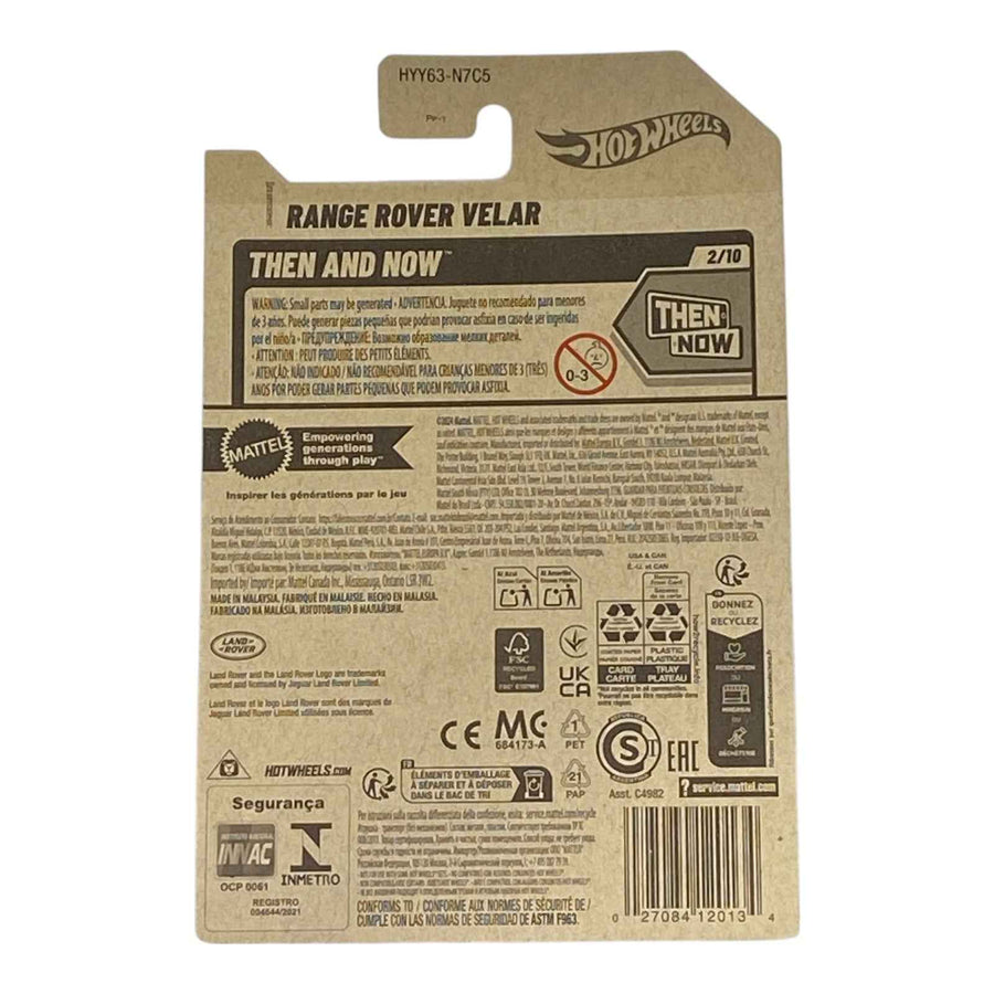 Elevate your die-cast empire with the gold Hot Wheels Range Rover Velar Then and Now Series 2/10, a gleaming 1:64-scale tribute to British SUV royalty. This lustrous metallic-gold masterpiece fuses modern Velar elegance with classic Range Rover DNA, boasting sleek lines, panoramic roof detailing, and premium Real Riders wheels for ultimate track dominance. Perfect for luxury SUV collectors and Hot Wheels hunters seeking rare series gems, the 2/10 Then and Now edition arrives in collector-friendly blister packaging. Search “Hot Wheels Range Rover Velar gold Then and Now” to claim this opulent limited-run icon before it speeds off the shelf.