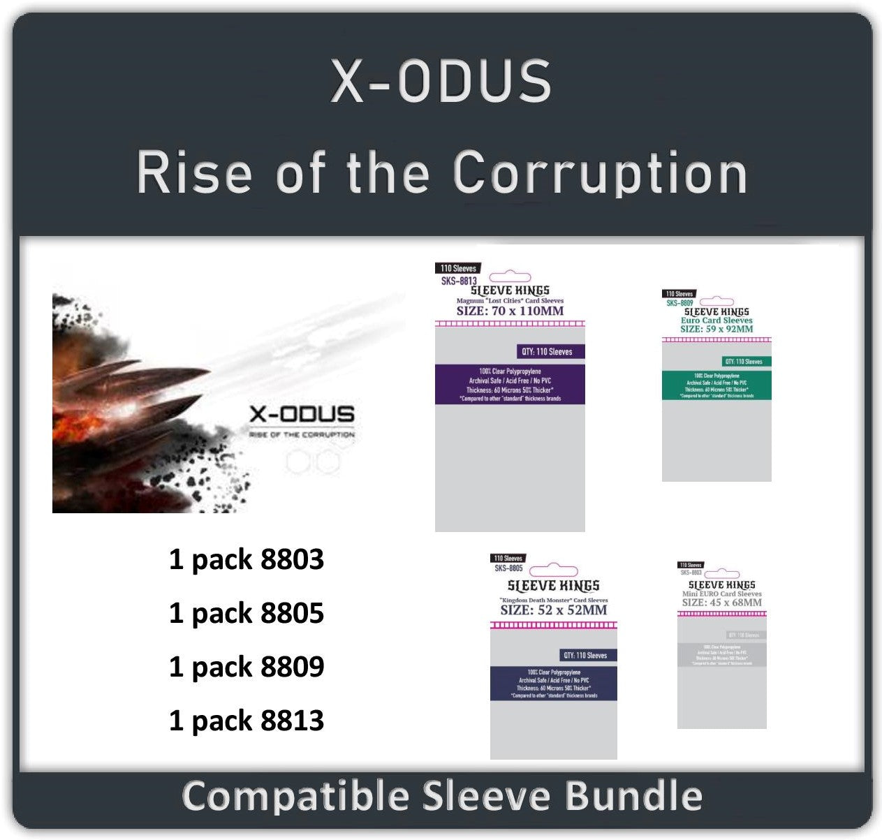 "X-ODUS - Rise of the Corruption" Compatible Sleeves Bundle (8803 X 1 +8805 X 1 + 8809 X 1 + 8813 X 1)