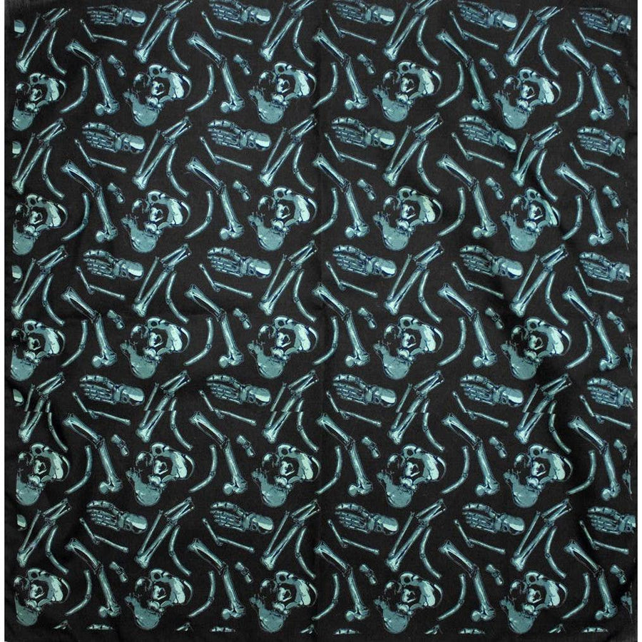 Add some dark flair to your style with the Sourpuss Black & Light Blue X-Ray Parts Bandana. Featuring an all-over print of skeleton bones and x-ray parts, this bold accessory is a must-have for gothic, punk, and alternative fashion lovers.