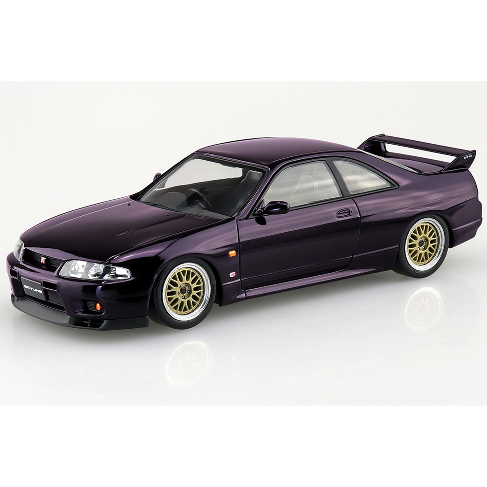 Aoshima brings out a new 1/32 scale model kit with the Nissan Skyline GT-R R33 in Midnight Purple.