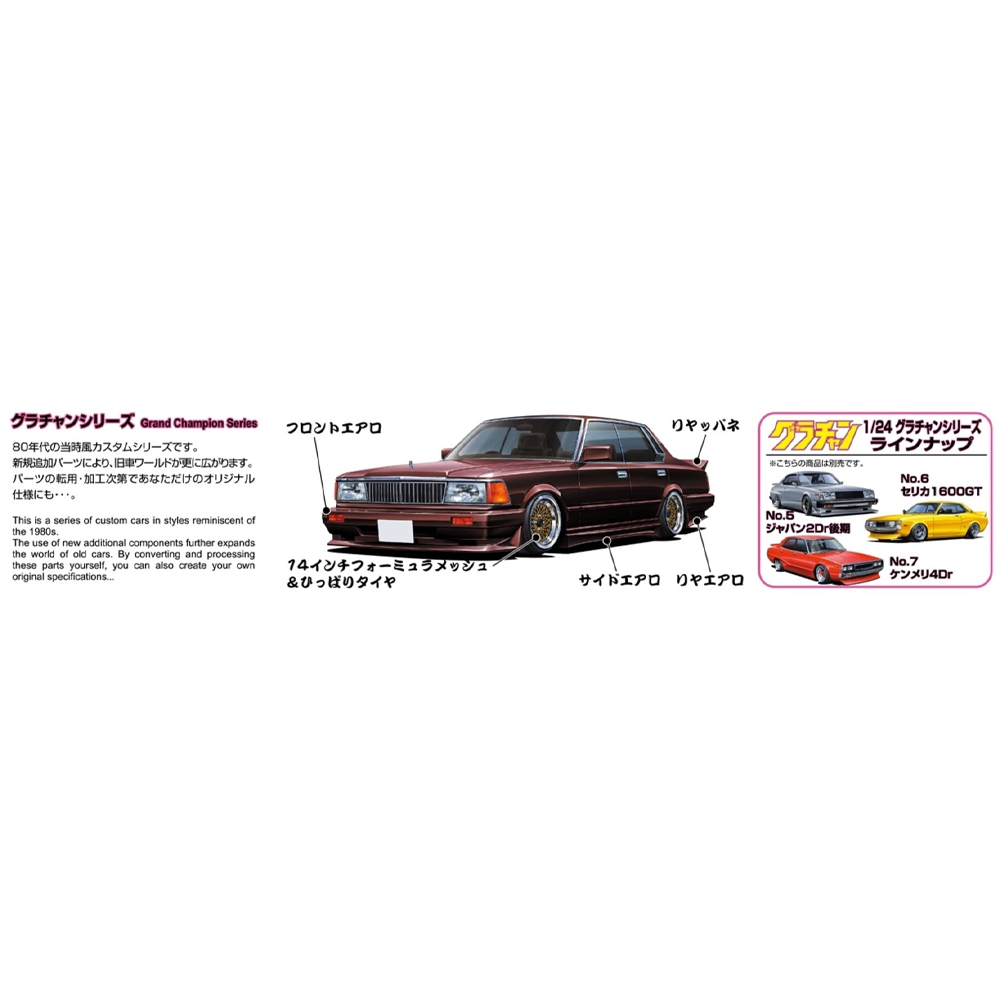 Aoshima brings you the Nissan Cedric 4DR HT 280E Brougham as a 1/24 scale model kit! Featuring rubber tires and decals, you can recreate this vehicle with great detail.