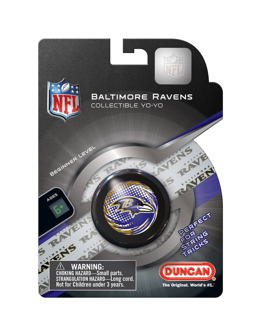 This Baltimore Ravens Collectible Duncan Yo-Yo is perfect for string tricks and is designed with your favorite team's logo and colors.  With practice, you can perform hundreds of tricks!  You can tighten or loosen string-grip by twisting yo-yo body halves in opposite directions.  This beginner level yo-yo has a team design on both sides.