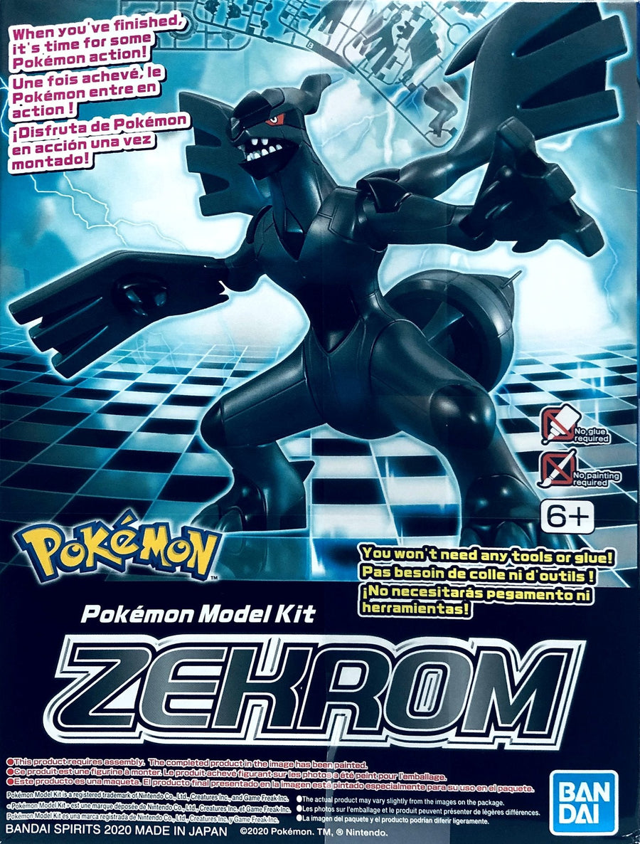 From the game Pokemon Black & White, the Dragon-Electric Legendary Zekrom gets a model kit. By moving its wings, you can make its mouth open! Pokemon model kits require no glue or tools to assemble!
