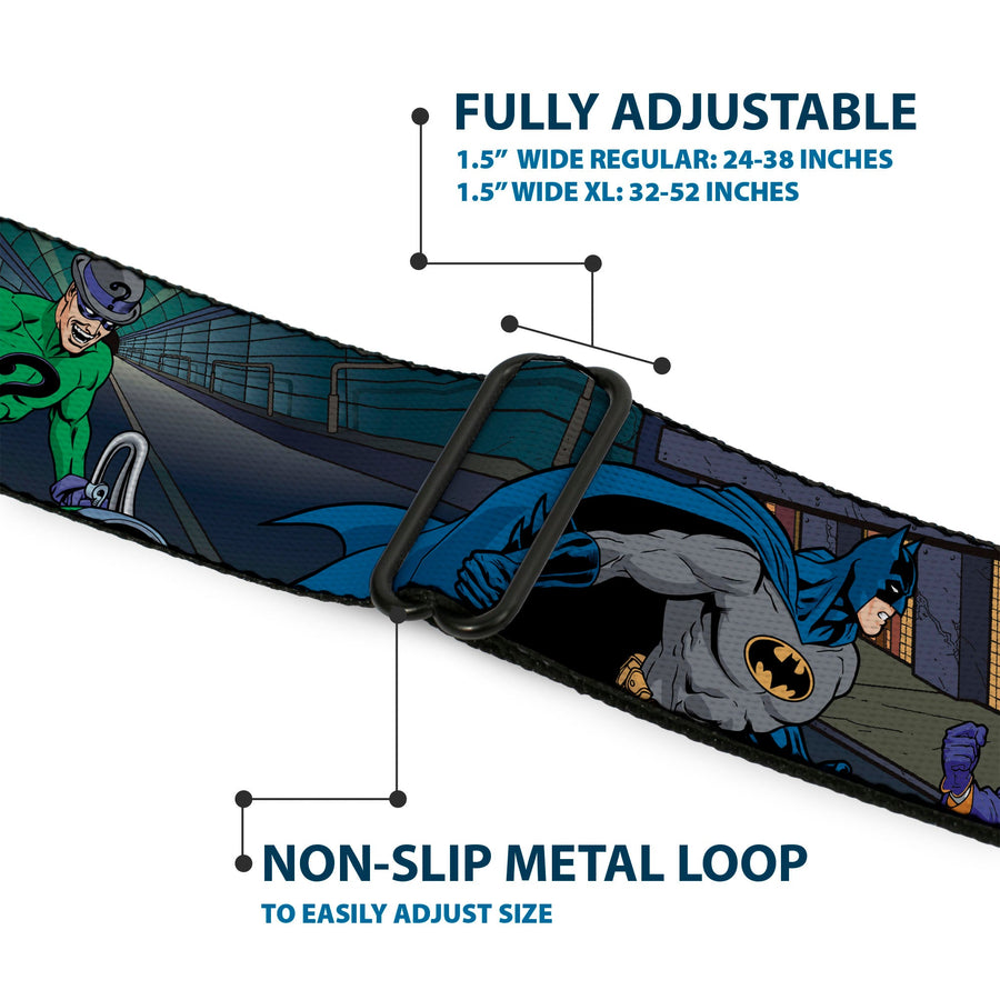 Buckle-Down's iconic Seatbelt Belt is a cool, smart, and exciting blend of fashion and function. Always a conversation starter, our Seatbelt Belt adjusts to perfectly fit your waist while showcasing your unique sense of style. Our Seatbelt Belts are made with authentic automotive style seatbelt buckles making them easy to open and close at the push of a button. Our adult-size Seatbelt Belts are 1.5 inches wide and our kid-sized Seatbelt belts are 1.0 inch wide. This product is Handcrafted in USA by Buckle-Down Inc. and officially licensed by DC Comics.