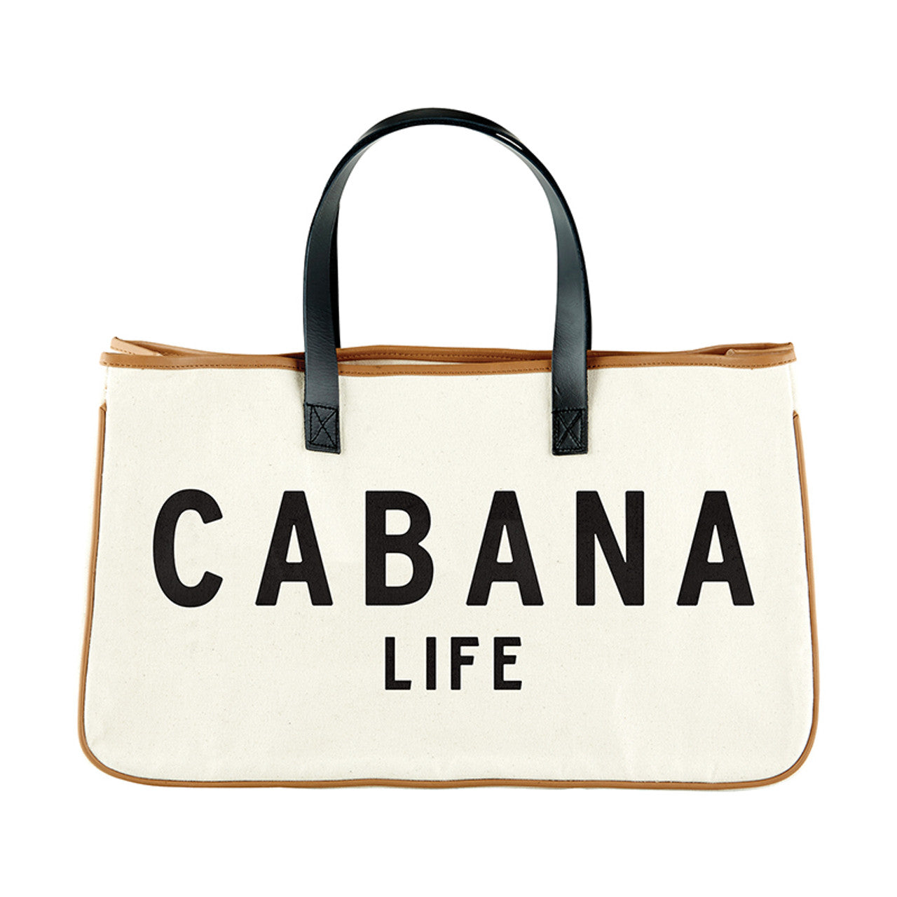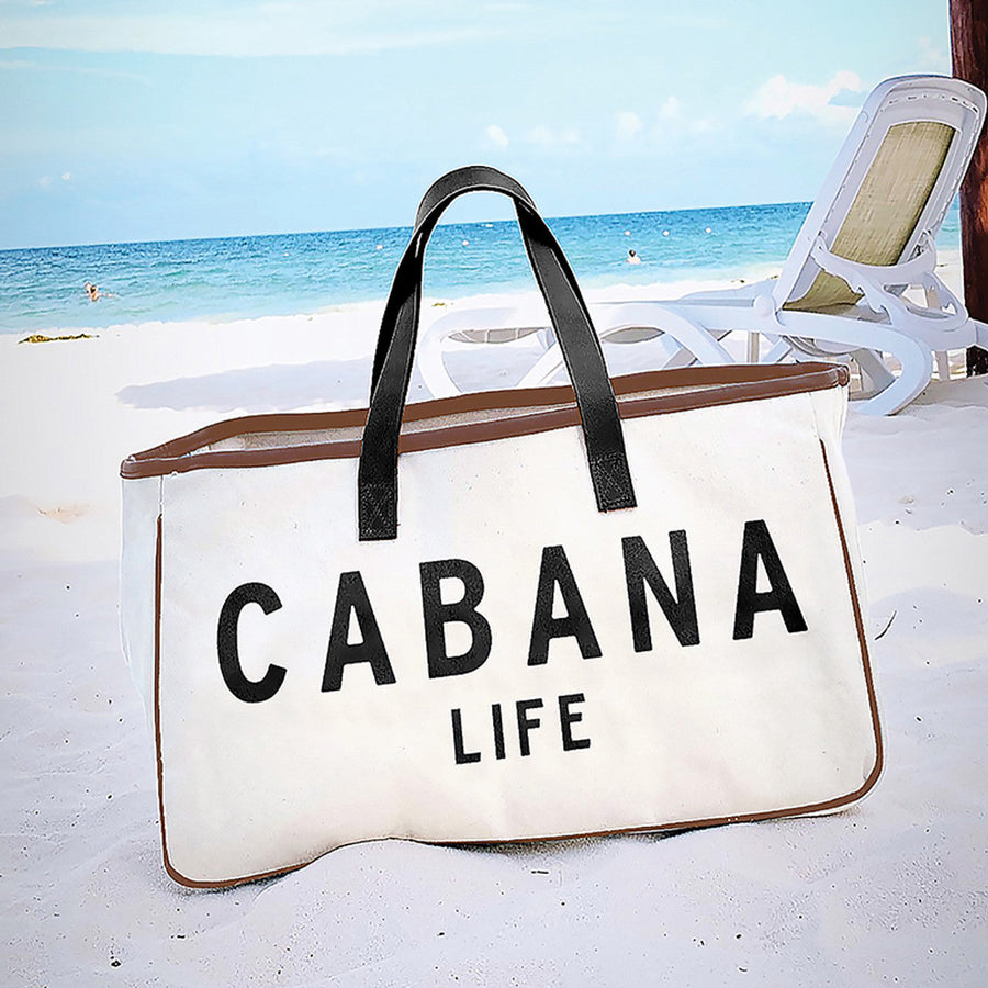 Cabana Life Canvas Rectangular Tote | Genuine Leather Handles Carry-all Beach Bag | 20" x 11"